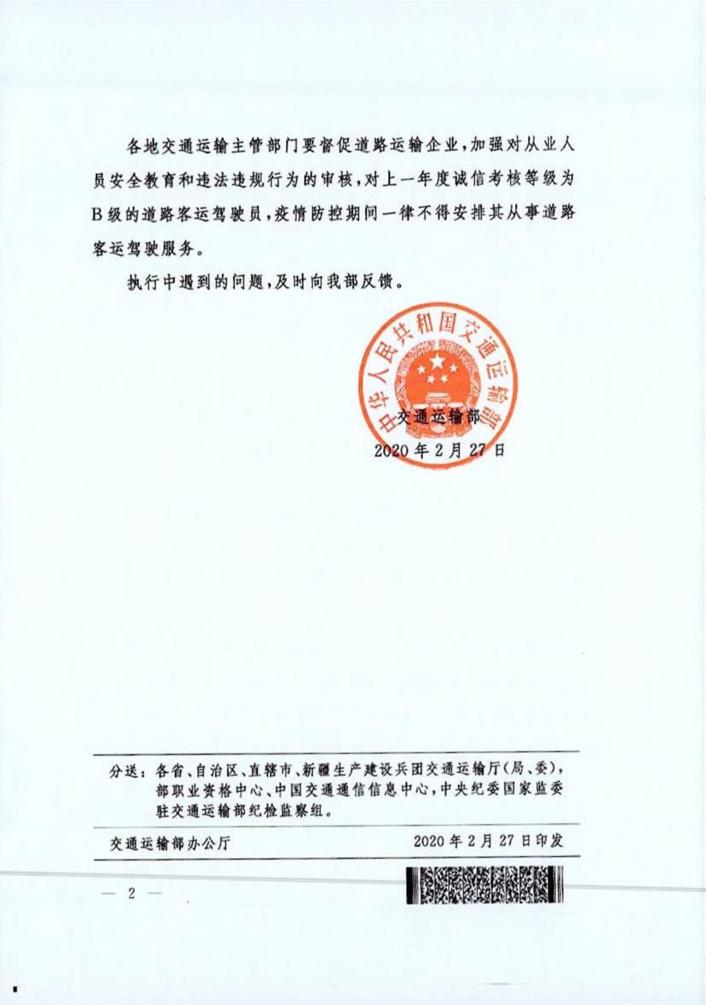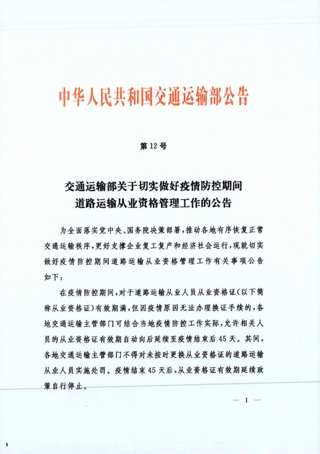 十大足彩平台关于切实做好疫情防控期间道路运输从业资格管理工作的公告