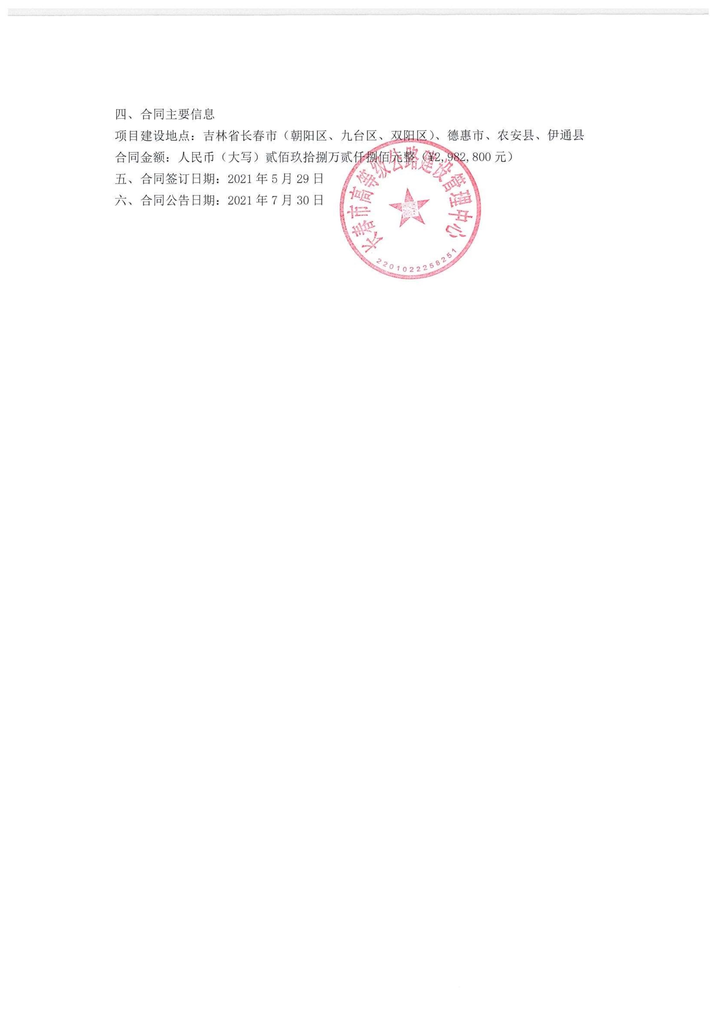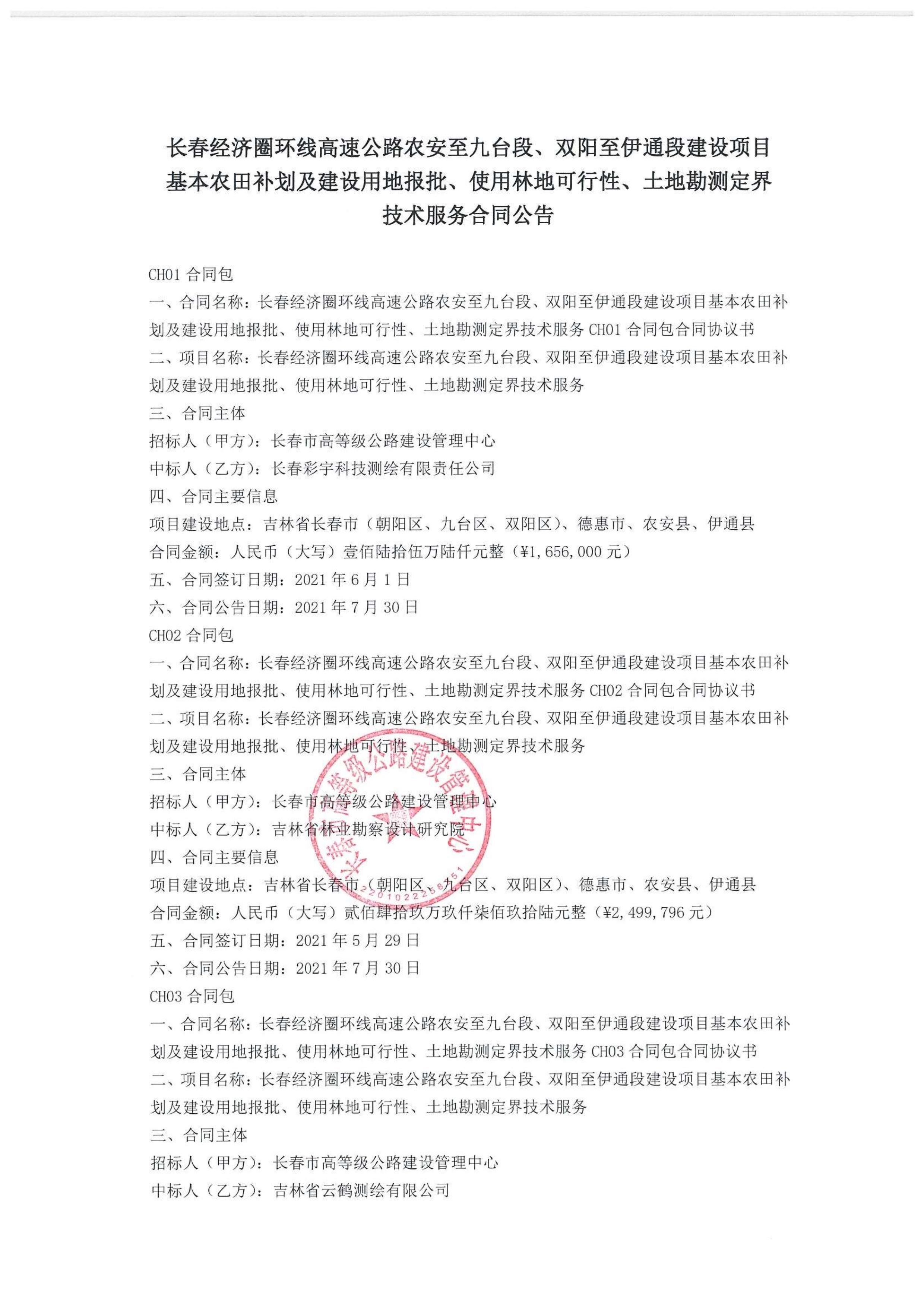 长春经济圈环线高速公路农安至九台段、双阳至伊通段建设项目基本农田补划及建设用地报批、使用林地可行性、土地勘测定界技术服务合同公告