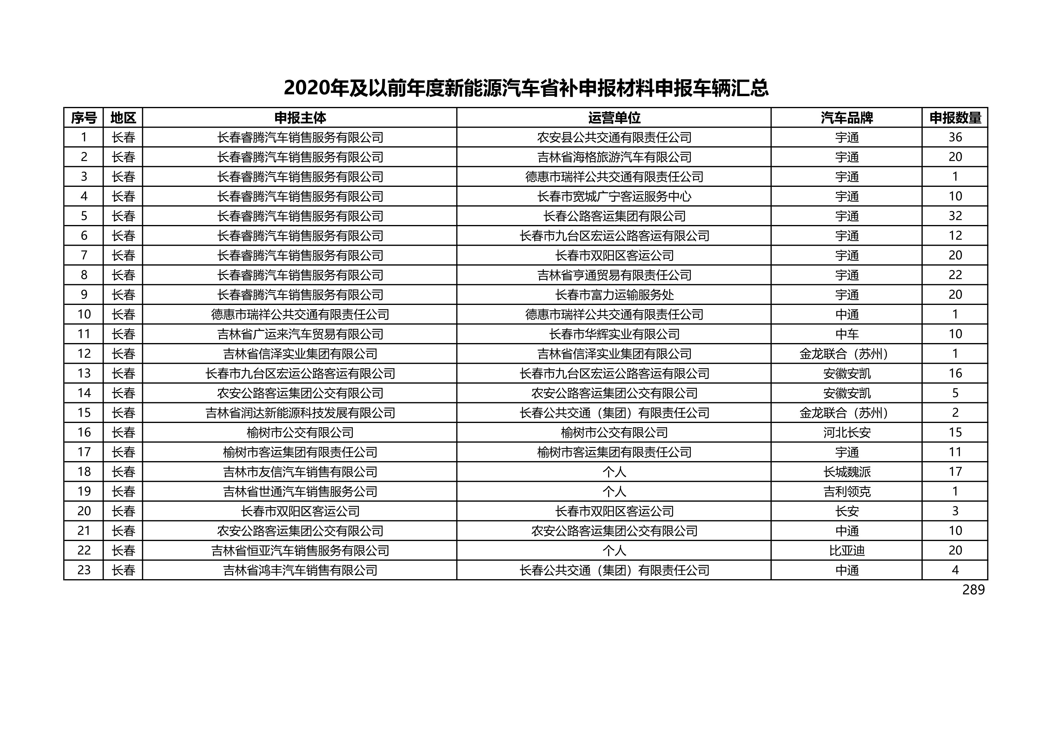 2020年及以前年度新能源汽车省补申报材料申报车辆汇总