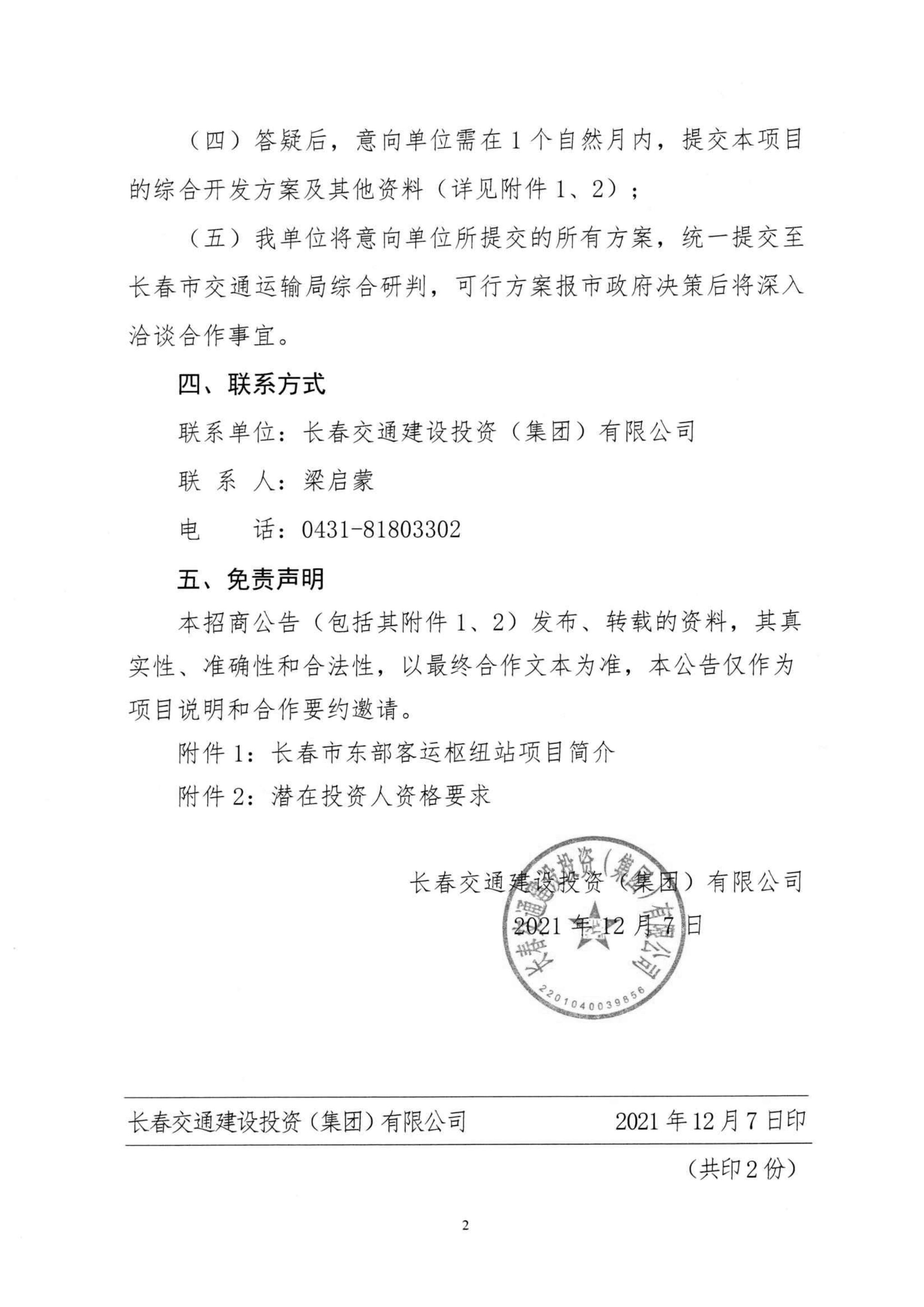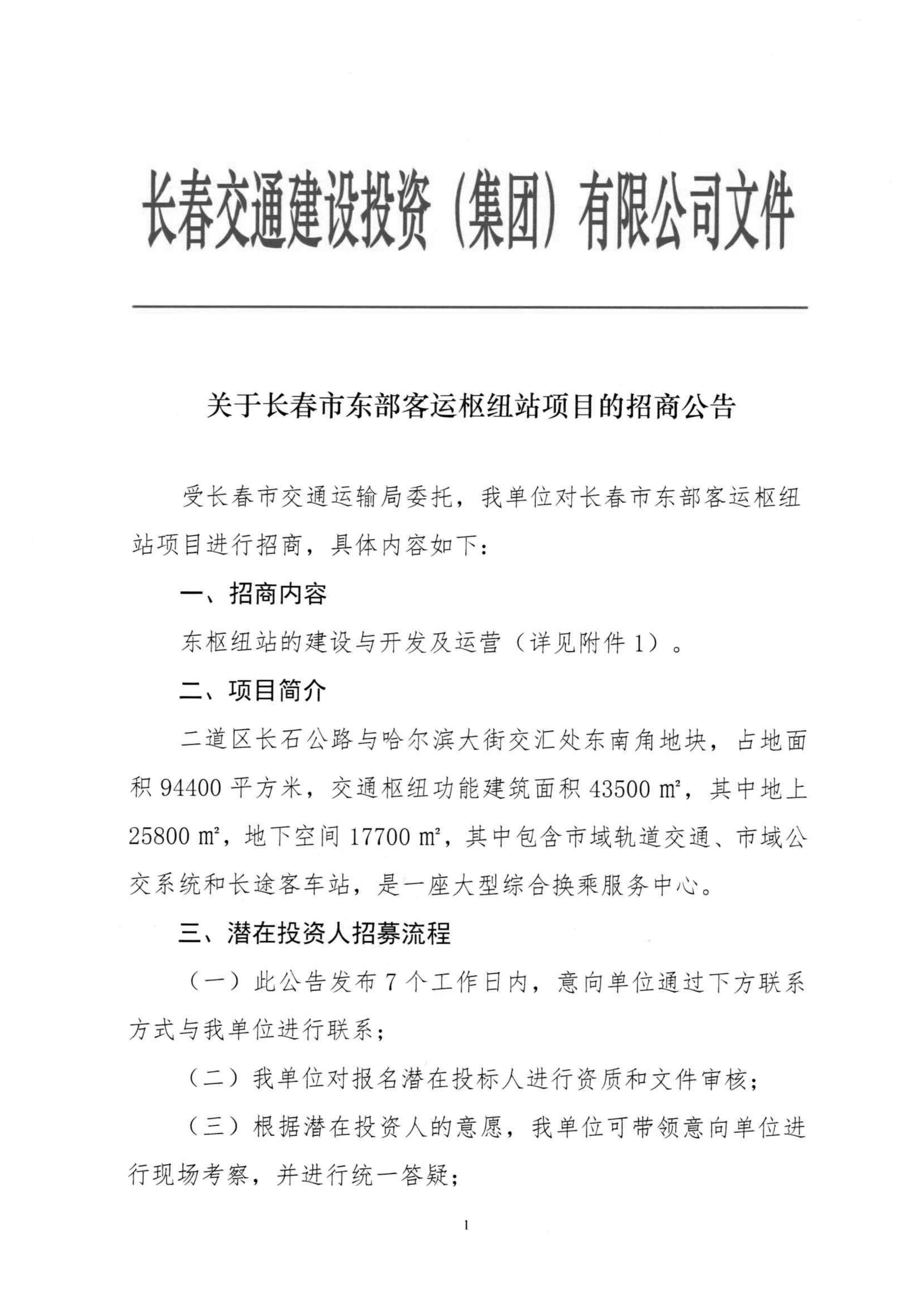 关于长春市东部客运枢纽站项目的招商公告.pdf