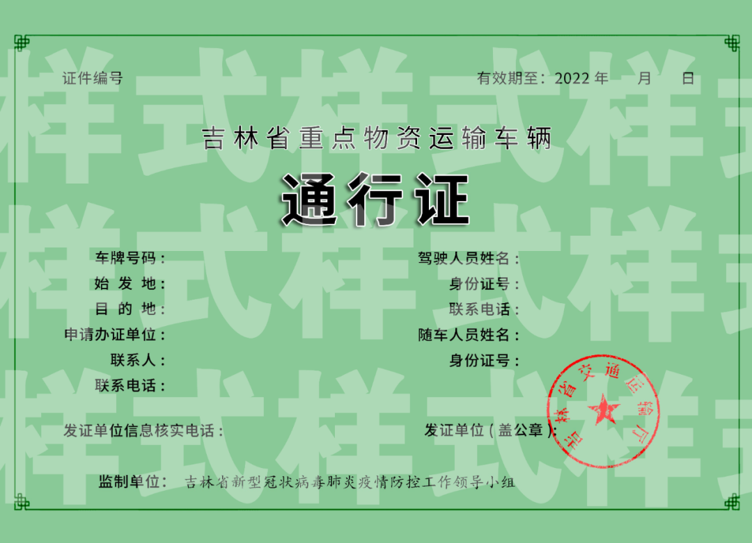 为贯彻落实好《国务院联防联控机制综合组交通管控与运输保障专班关于全力做好货运物流保通保畅工作的通知》(以下简称《通知》)要求,确保我省跨省货运物流通畅,4月15日,省新冠肺炎疫情防控工作领导小组办公室向各地转发该《通知》,并决定从即日起,启用省疫情防控领导小组统一监制的新版跨省《吉林省重点物资运输车辆通行证》(以下简称《通行证》),实行“一车一证一线路”,有效期原则上不得超过1个月。