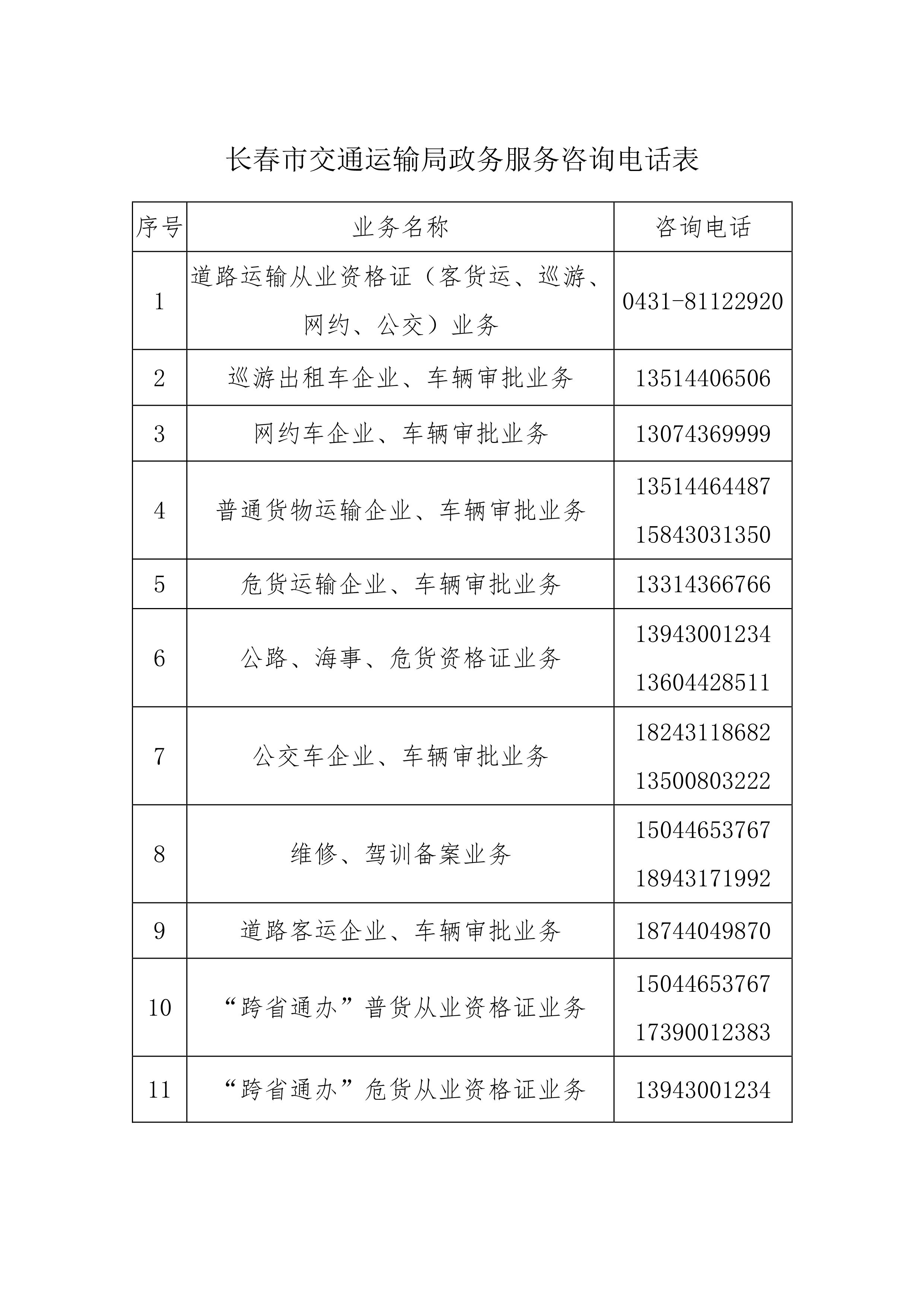 三、公示政务服务审批事项咨询电话(见附件),及时为企业、从业人员提供咨询服务。