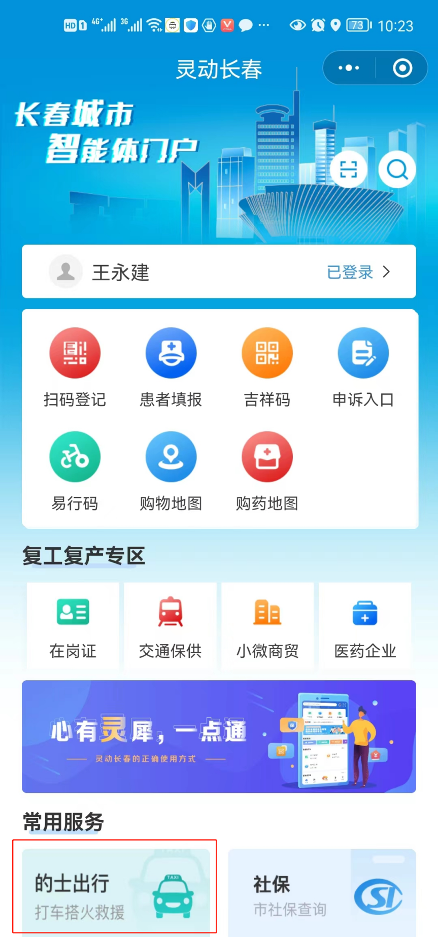 第二步,在“灵动长春”程序内点击“的士出行”。