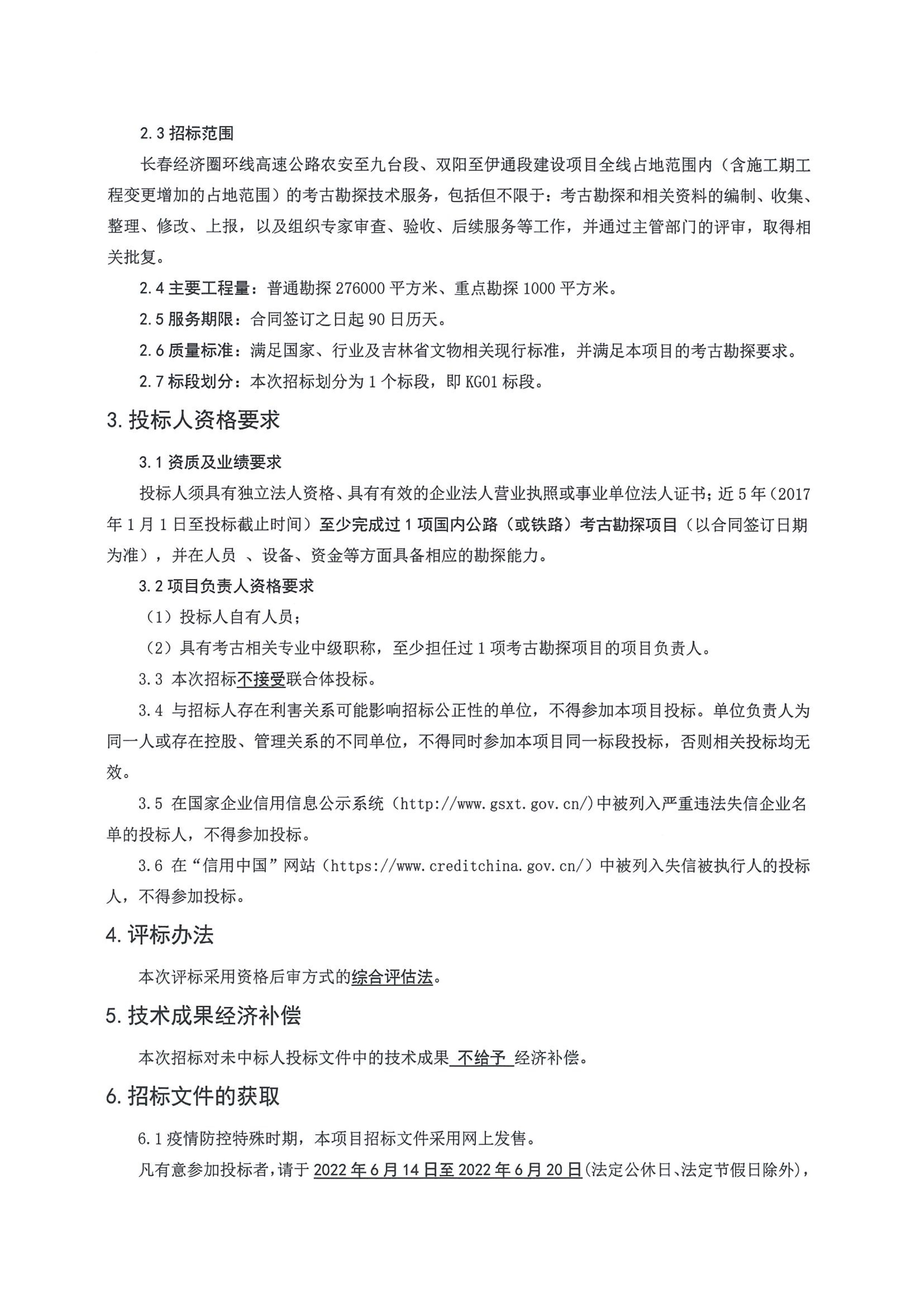 长春经济圈环线高速公路农安至九台段、双阳至伊通段建设项目考古勘探技术服务招标招标文件关键内容信息公开.pdf