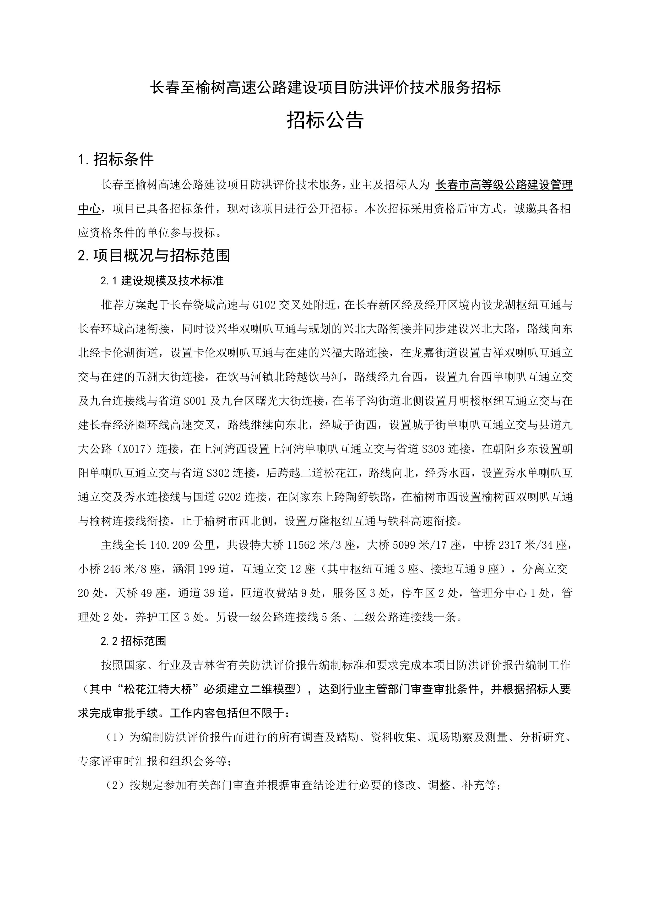长春至榆树高速公路建设项目防洪评价技术服务招标招标公告.pdf
