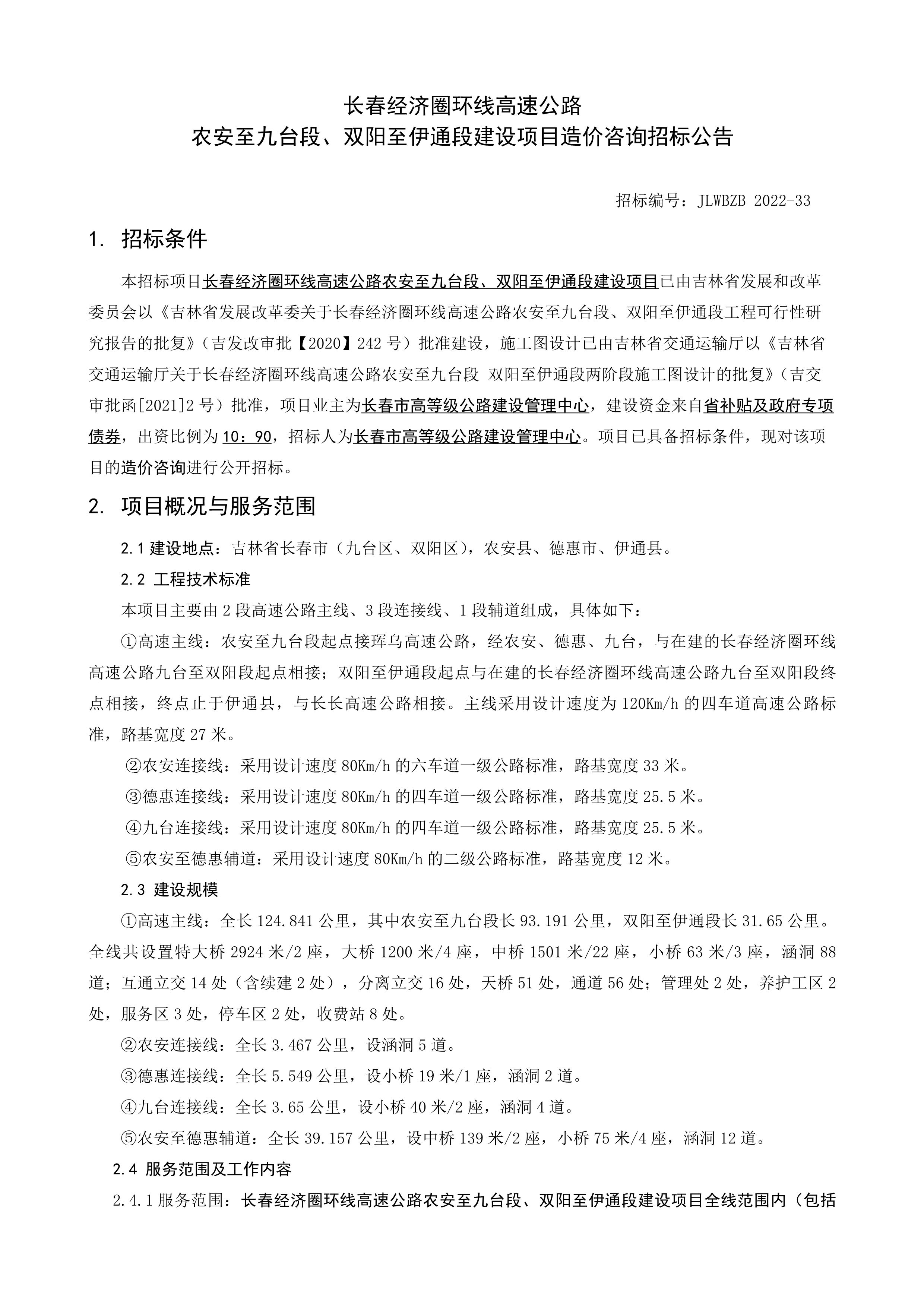 长春经济圈环线高速公路农安至九台段、双阳至伊通段建设项目造价咨询招标招标文件关键内容信息公开.pdf
