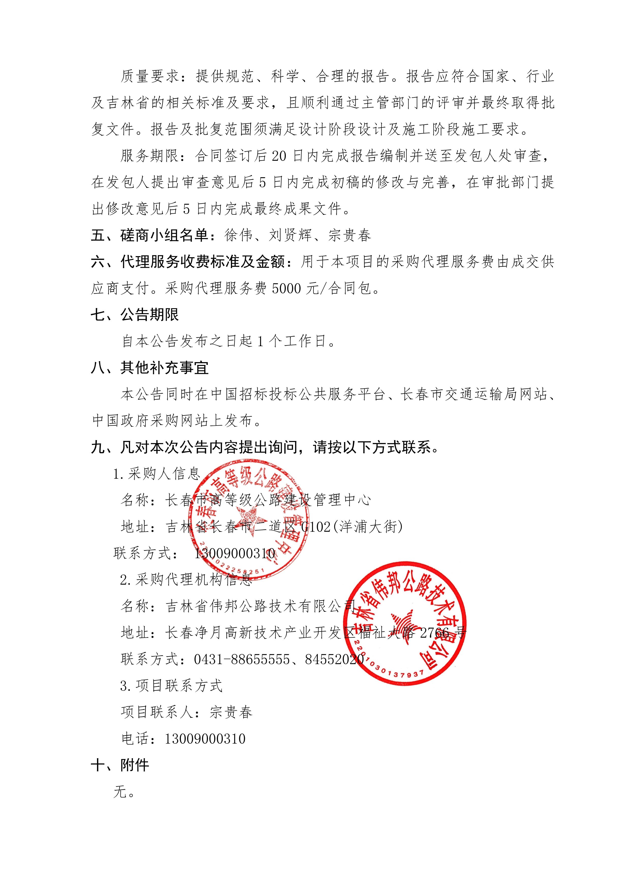 长春至榆树高速公路建设项目水土保持报告编制、社会稳定风险评估成交结果公告
