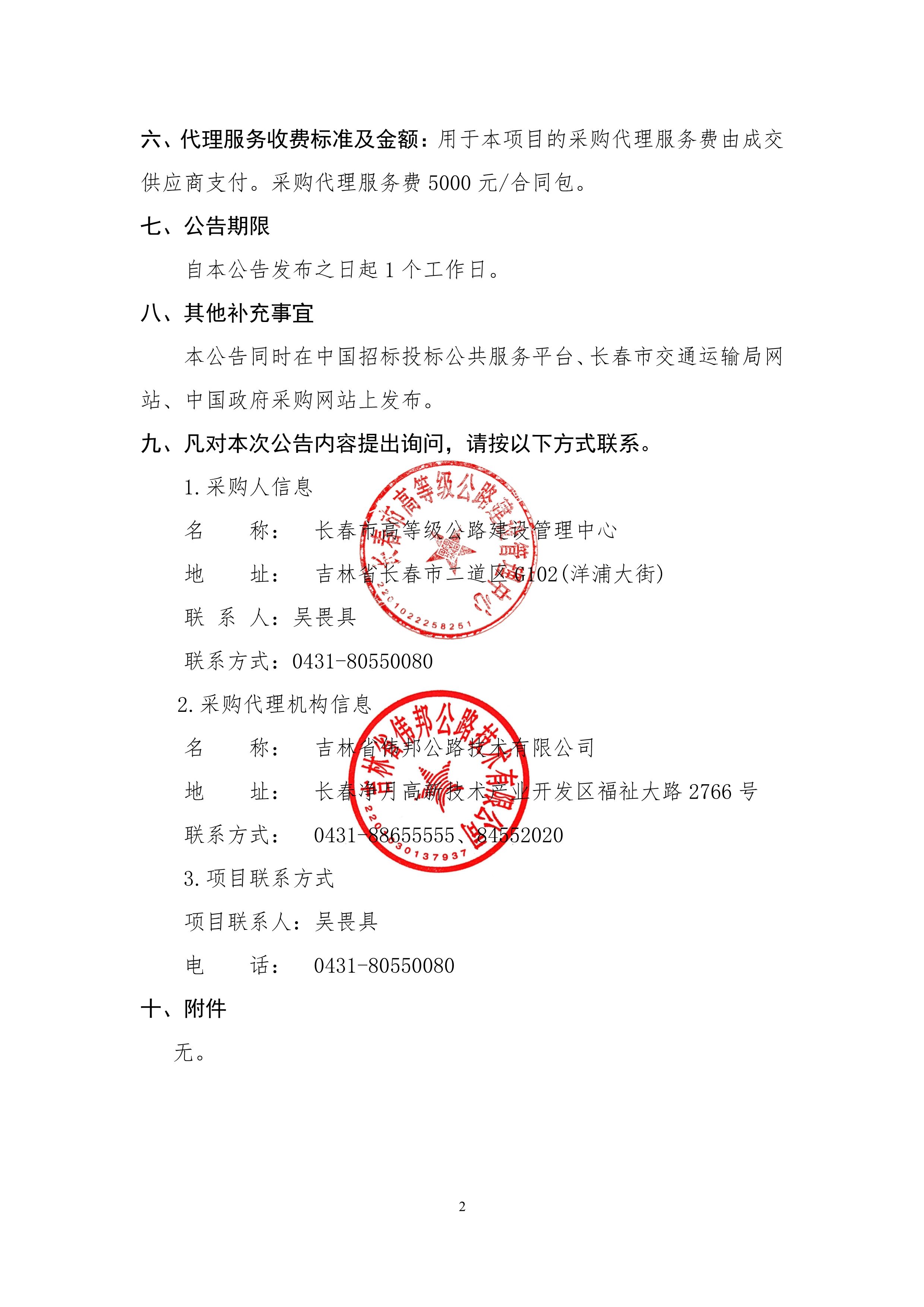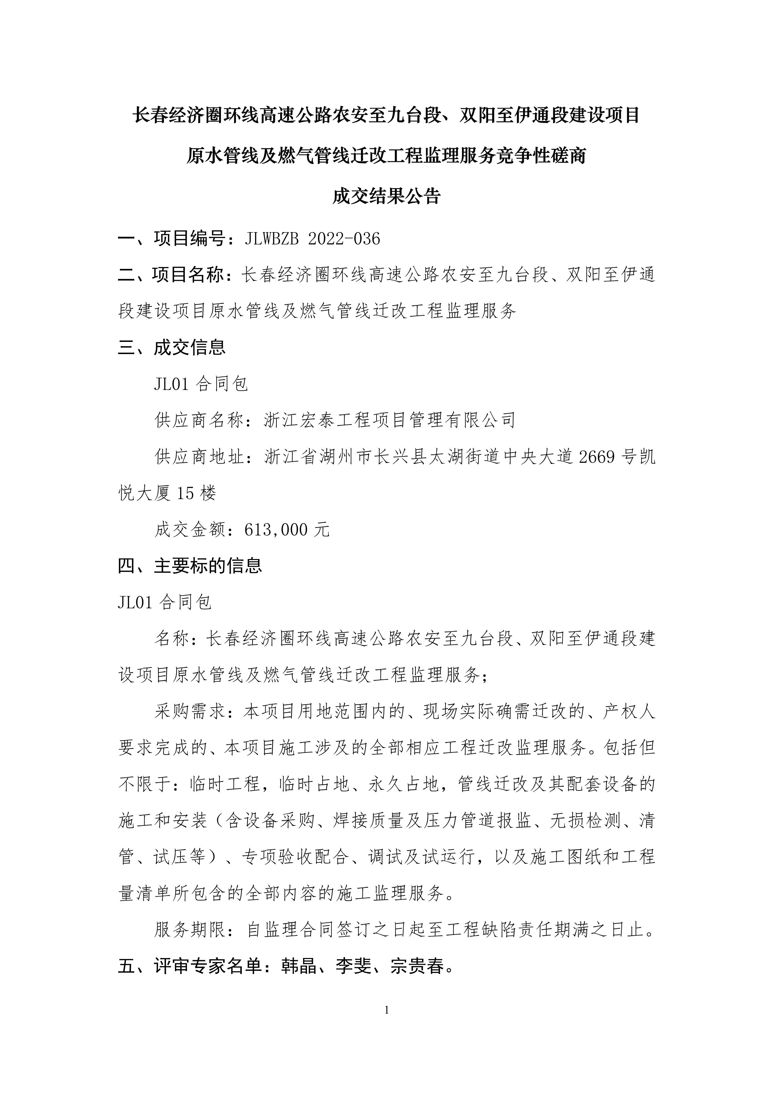 长春经济圈环线高速公路农安至九台段、双阳至伊通段建设项目原水管线及燃气管线迁改工程监理服务竞争性磋商成交结果公告