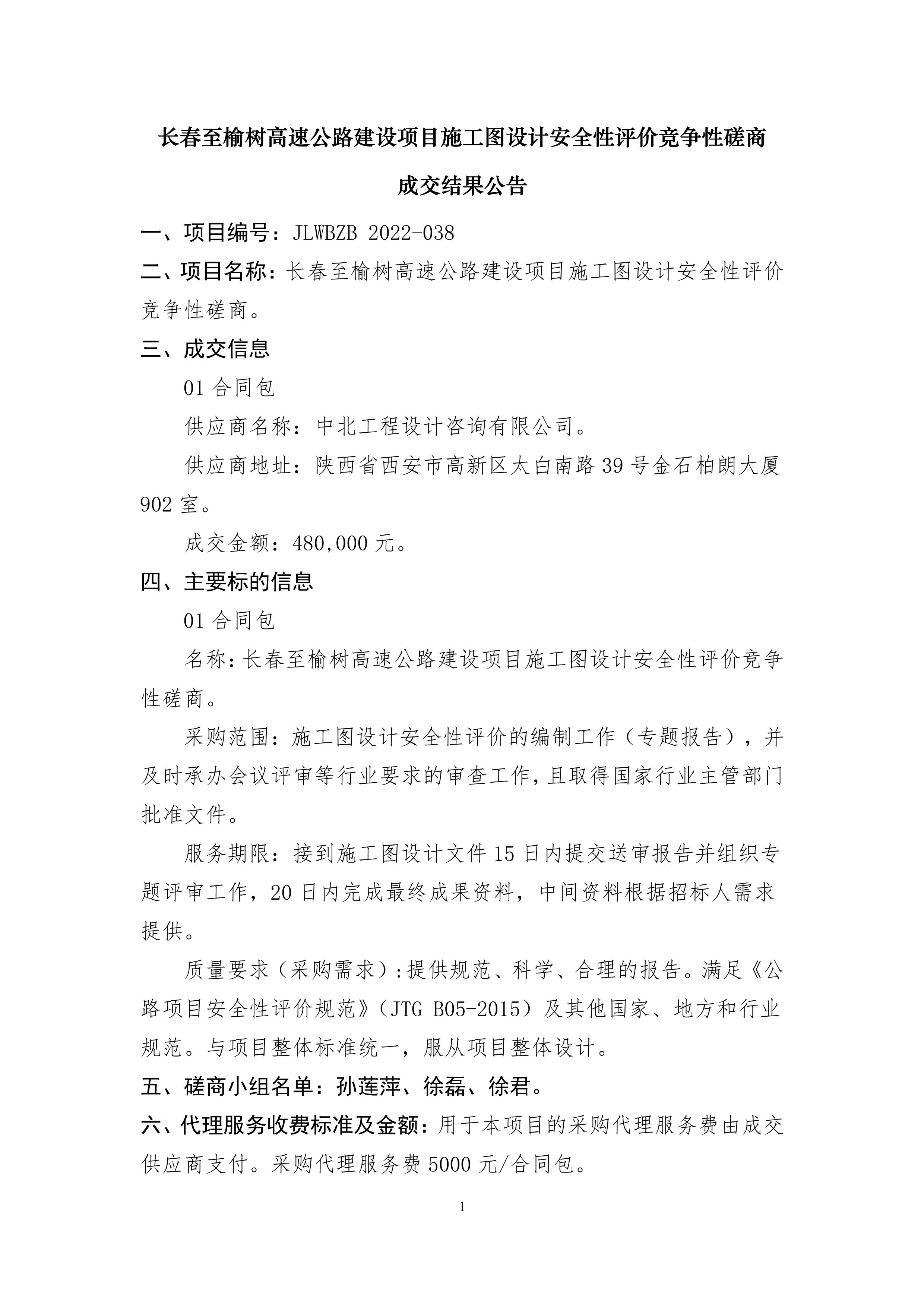 长春至榆树高速公路建设项目施工图设计安全性评价竞争性磋商成交结果公告.pdf