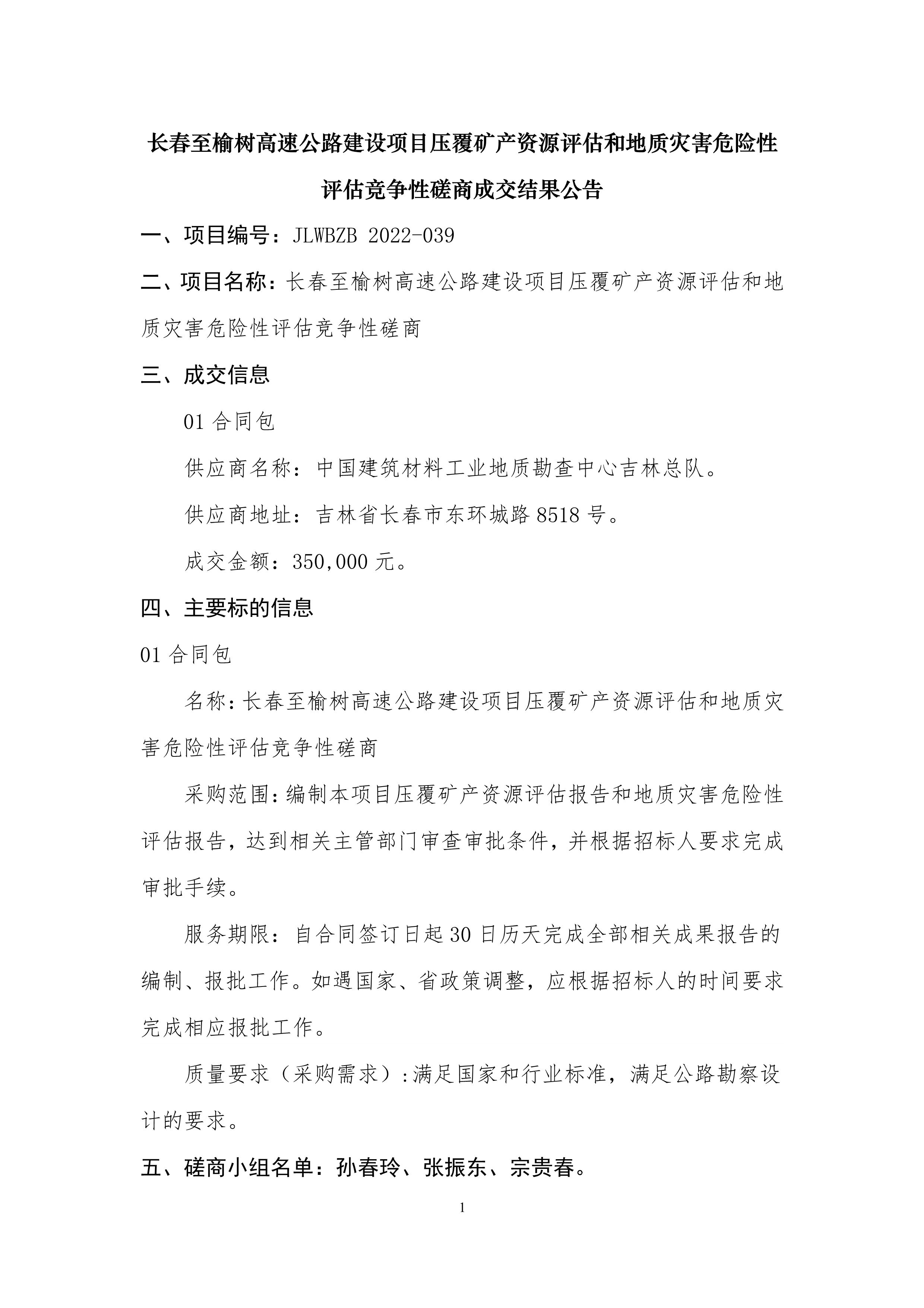 长春至榆树高速公路建设项目压覆矿产资源评估和地质灾害危险性评估成交结果公告.pdf