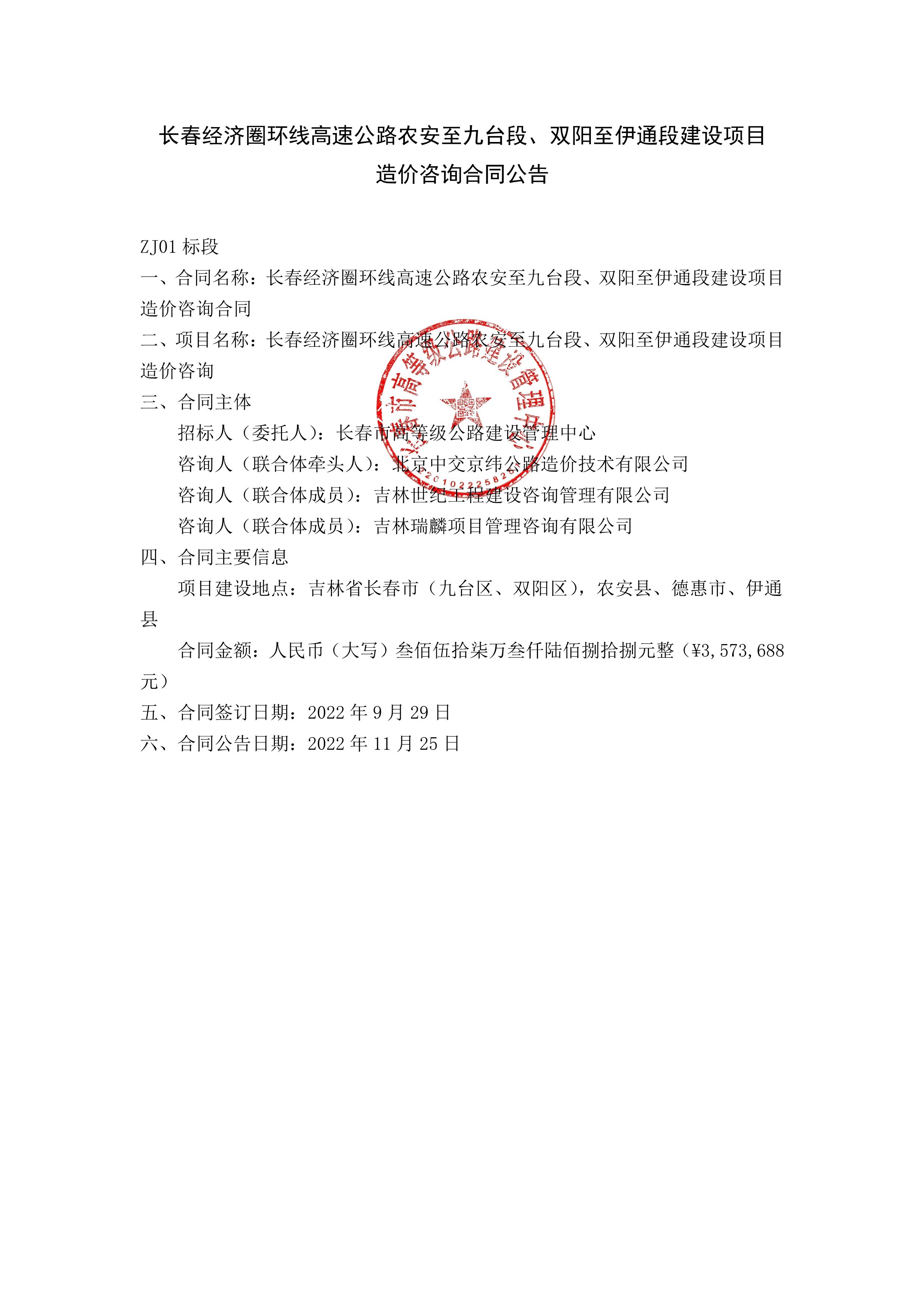 长春经济圈环线高速公路农安至九台段、双阳至伊通段建设项目造价咨询合同公告.pdf