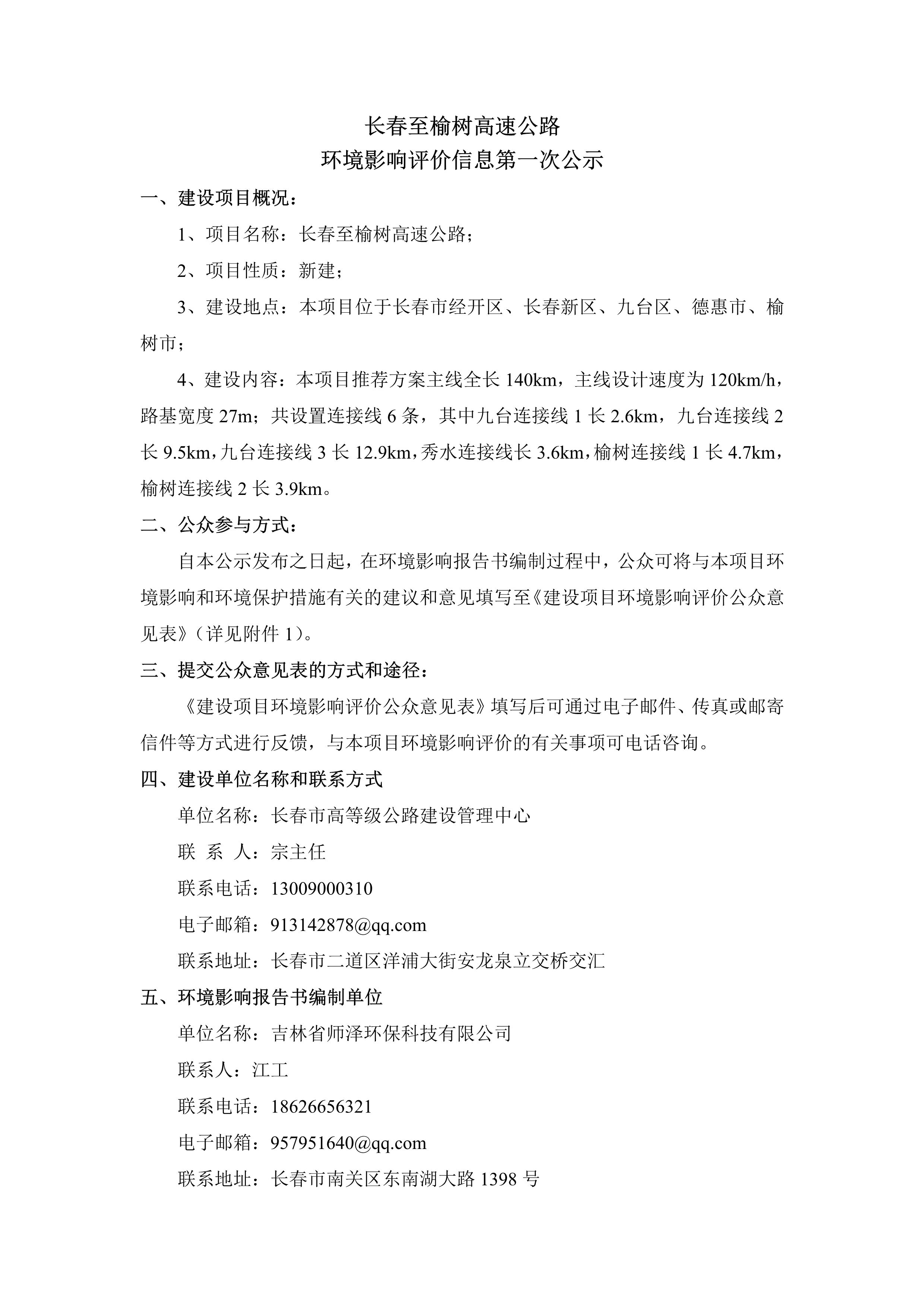 长春至榆树高速公路环境影响评价信息第一次公示.pdf