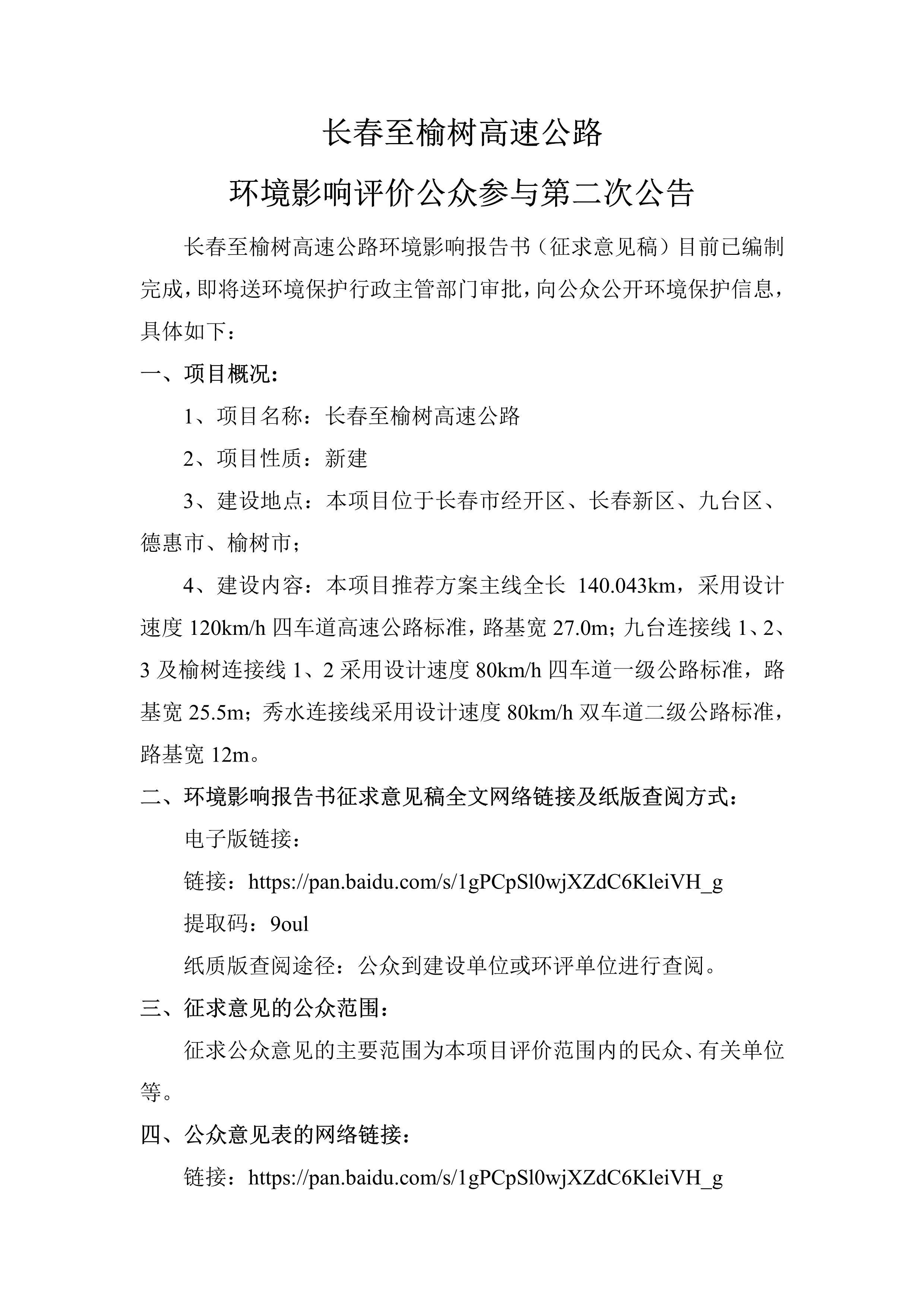 长春至榆树高速公路环境影响评价公众参与第二次公告.pdf