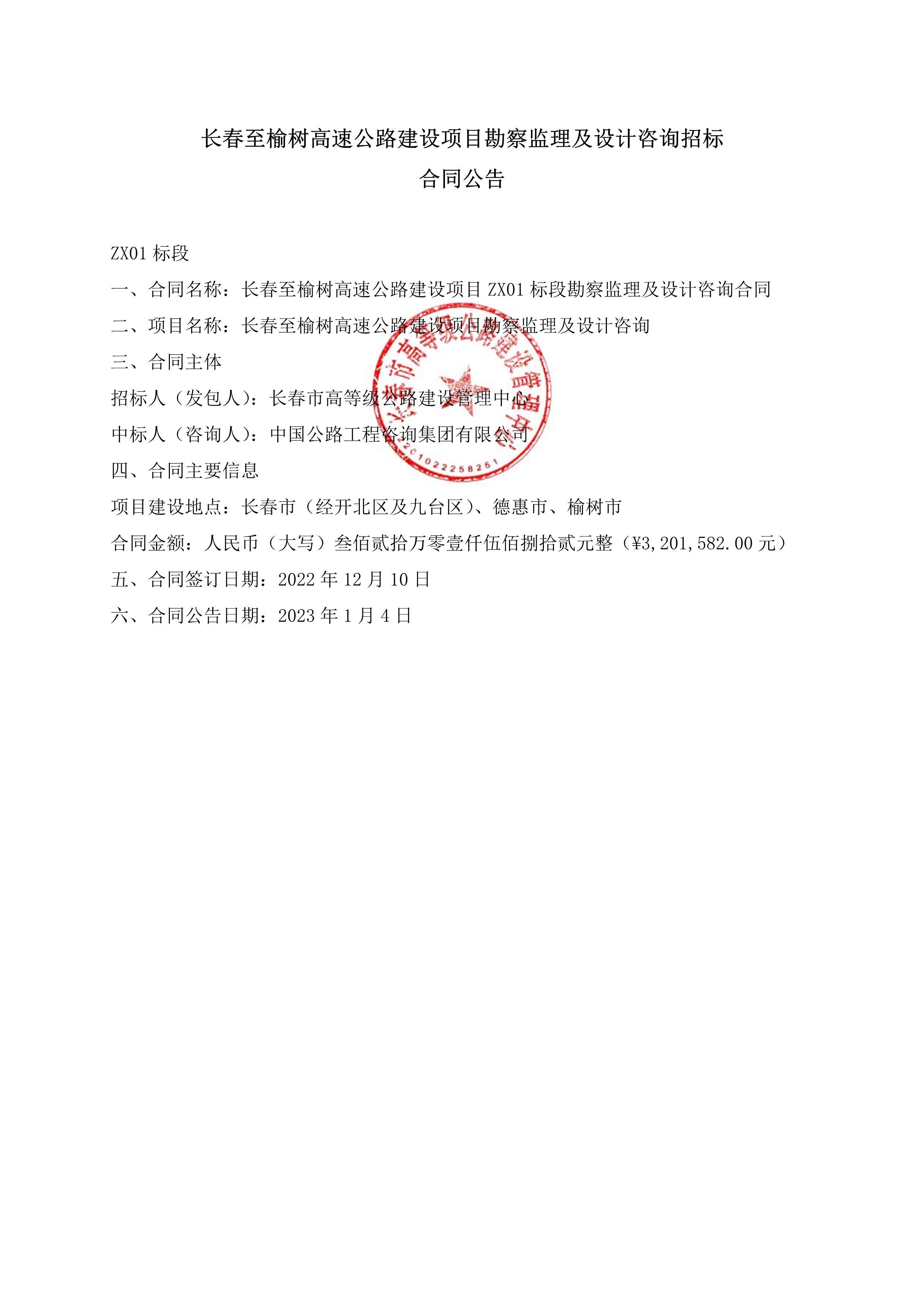 长春至榆树高速公路项目勘察监理及设计咨询合同公告.pdf