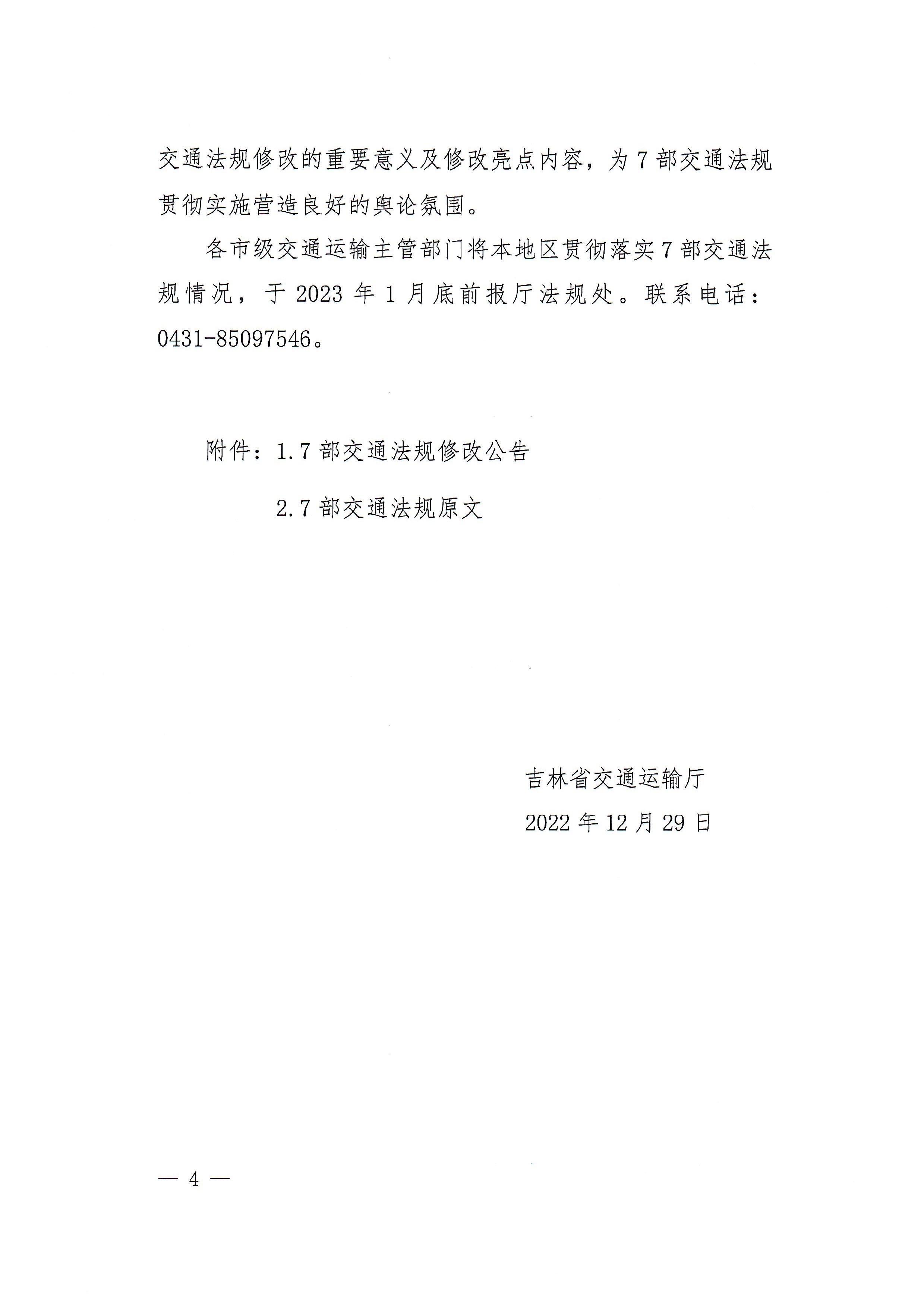 关于做好新修改《吉林省高速公路路政管理条例》等7部交通法规贯彻落实工作的通知