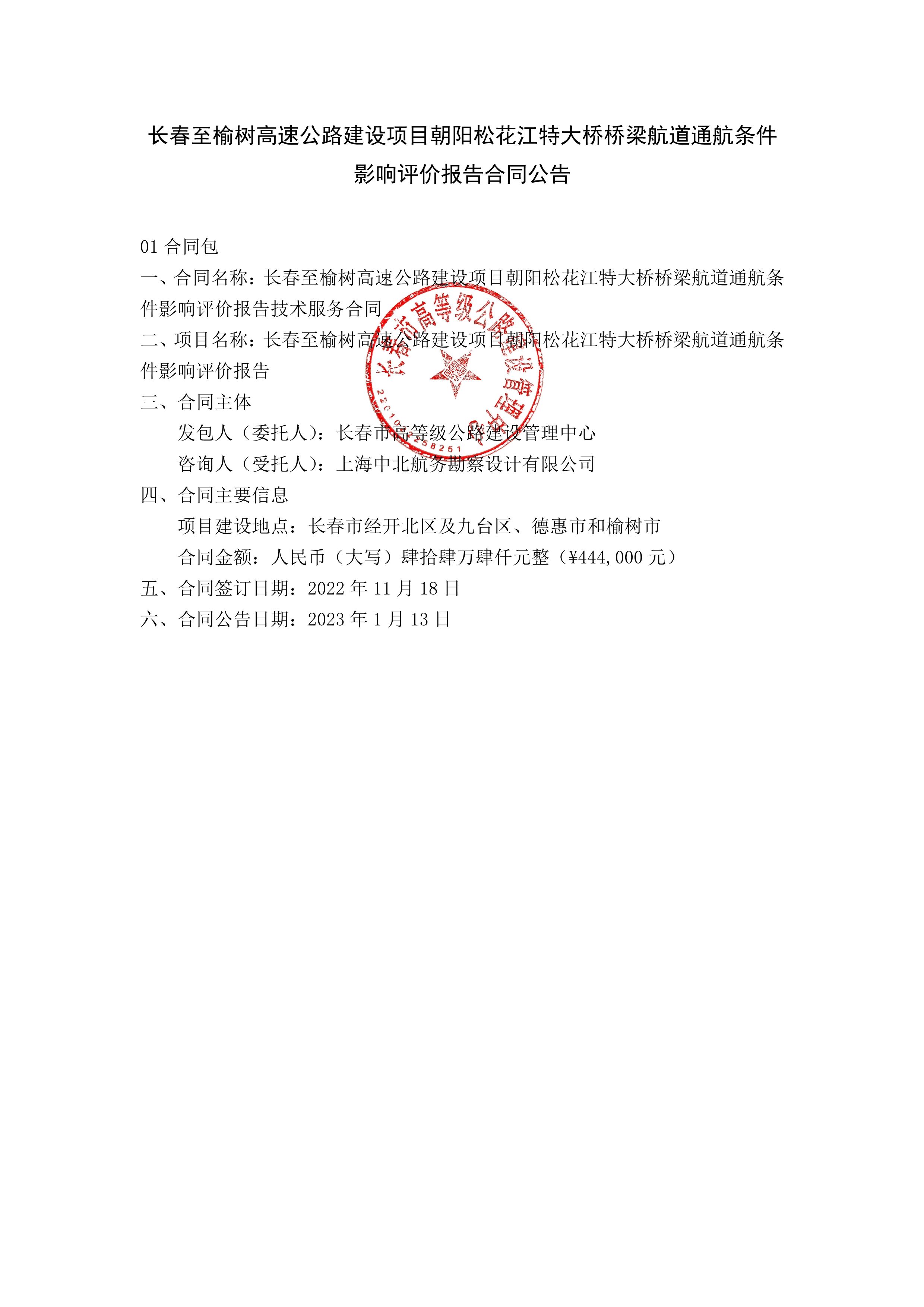 长春至榆树高速公路建设项目朝阳松花江特大桥桥梁航道通航条件影响评价合同公告.pdf