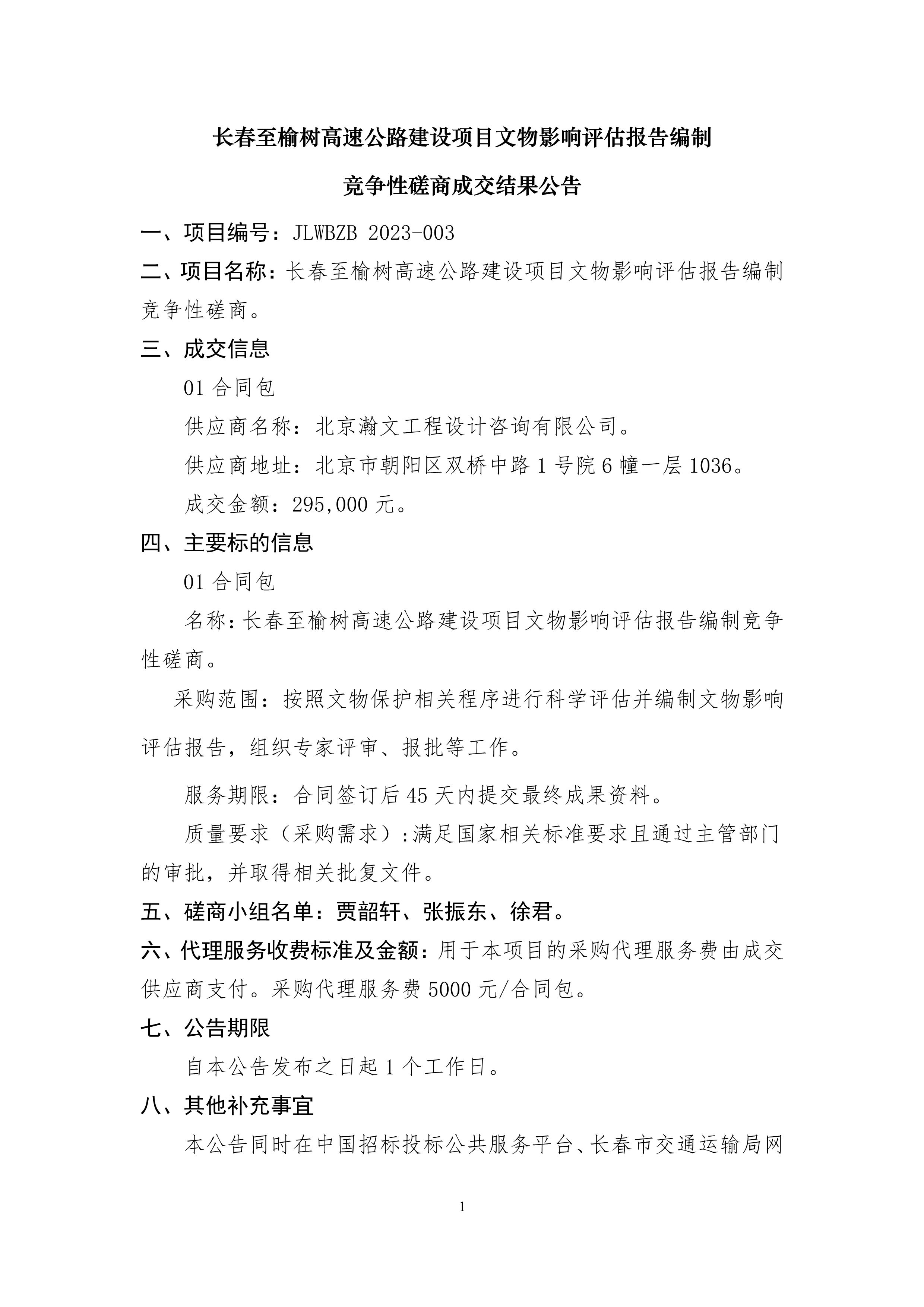 长春至榆树高速公路建设项目文物影响评估报告编制竞争性磋商成交结果公告.pdf