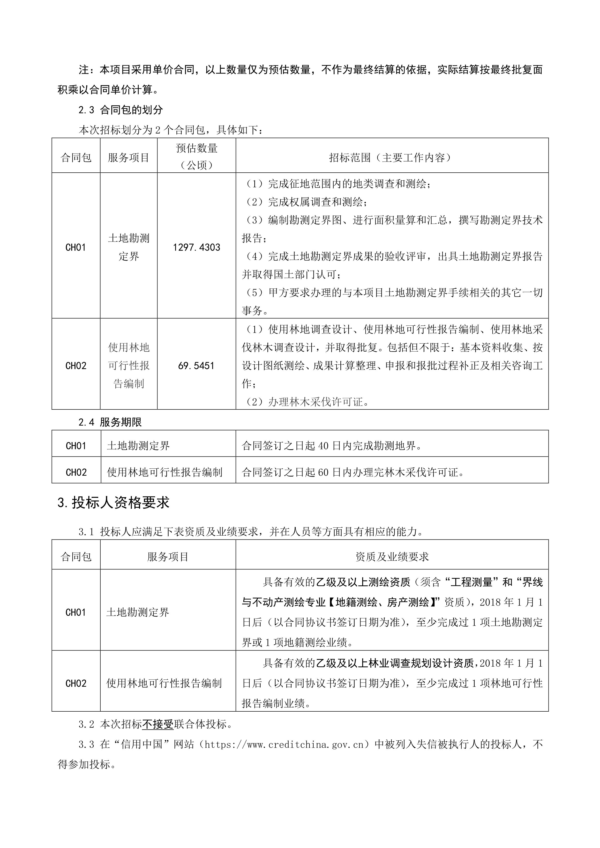 长春至榆树高速公路建设项目土地勘测定界、使用林地可行性报告编制技术服务CH01合同包招标文件关键内容信息公开.pdf