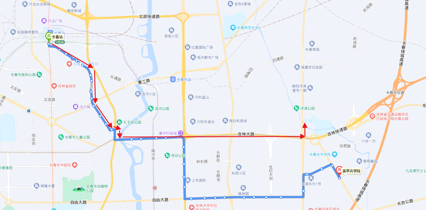 线路情况:该线路由长春公交集团经营,由新立城始发,途经新城大街,终到乐群街,线路总长24公里,车隔10分钟。