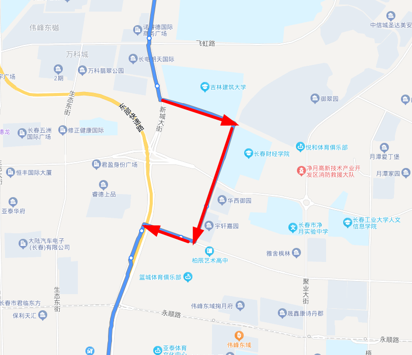 意义作用:因路网结构限制,线路在亚泰大街台北大街处上下行不一致,目前道路已具备通行条件,为便利乘客出行,计划将上下行调整一致,取消亚泰大街部分。
