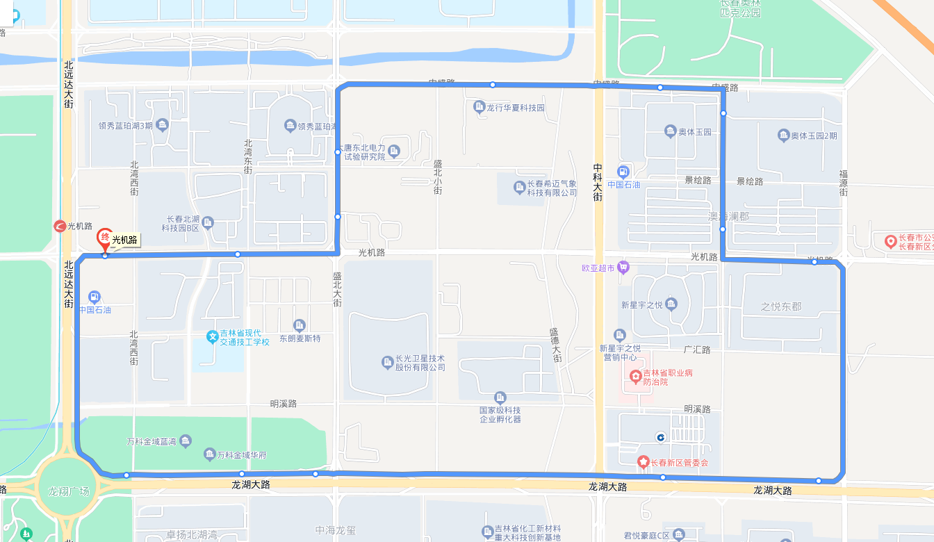 线路情况:该线路由长春公交集团经营,线路性质为循环线路,首末站为龙翔广场,途经光机路、福源街、龙湖大路,线路总长6.2公里,车隔10分钟。