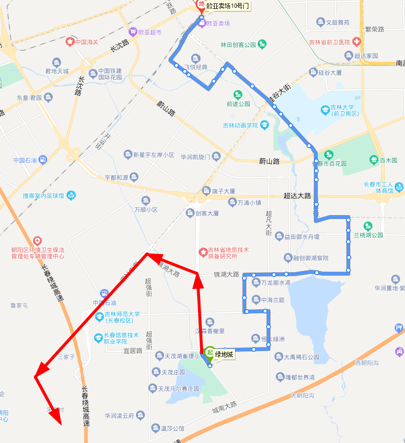 线路情况:该线路由长春市圆通客运公司经营,由欧亚卖场始发,途经飞跃路、锦湖大路、硅谷大街,终到阜育大街,线路总长24公里,车隔15分钟。