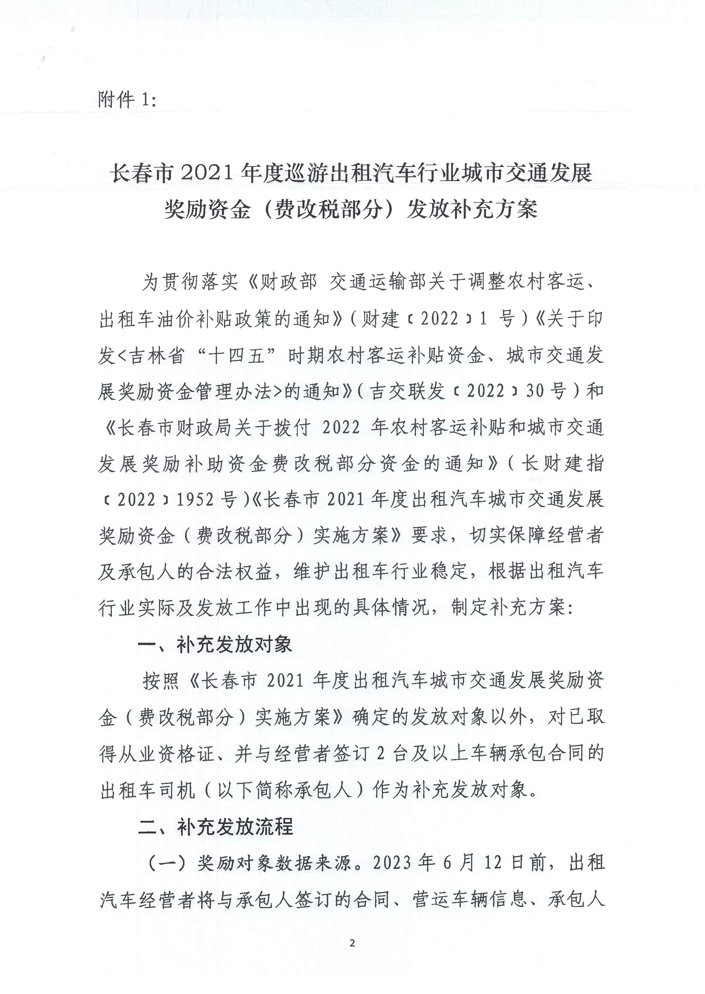 关于印发《长春市2021年度巡游出租汽车行业城市交通发展奖励资金(费改税部分)发放补充方案》的通知.pdf