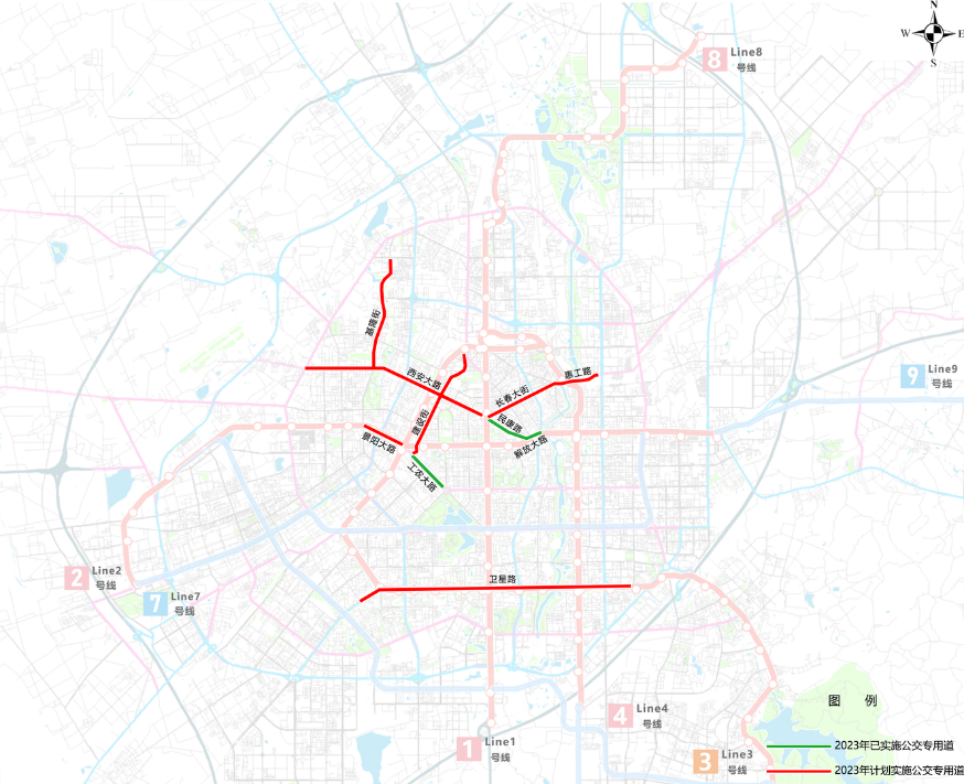 西安大路西四环至人民广场段,全长8.6公里;长春大街、惠工路,全长4.5公里;基隆街新月路至景阳广场段,全长6公里;建设街西广场至工农大路段,全长4公里;卫星路飞跃路至会展大街段,全长10.6公里。以上管控时间均为7:00至9:00和16:00至19:00,管控时间内允许公交车、黄牌载客大巴、校车、救护车及消防应急车辆通行。(留言信箱ccjiaotong@163.com)