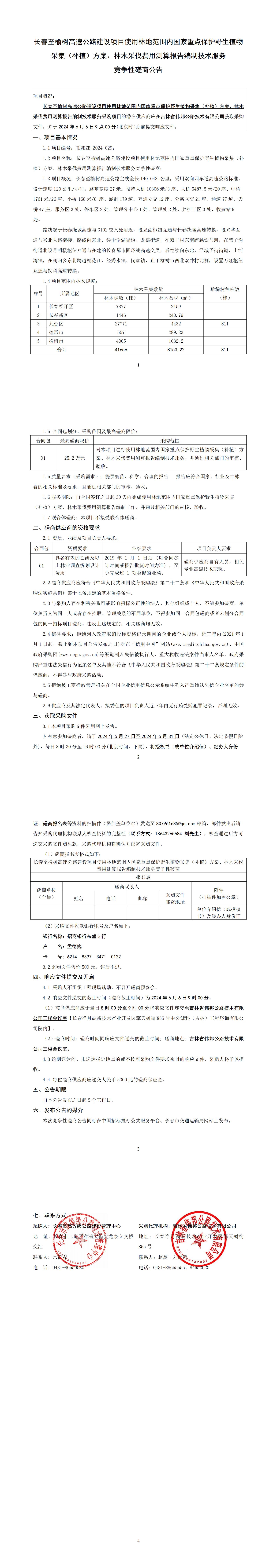 长春至榆树高速公路建设项目使用林地范围内国家重点保护野生植物采集(补植)方案、林木采伐费用测算报告编制技术服务 竞争性磋商公告
