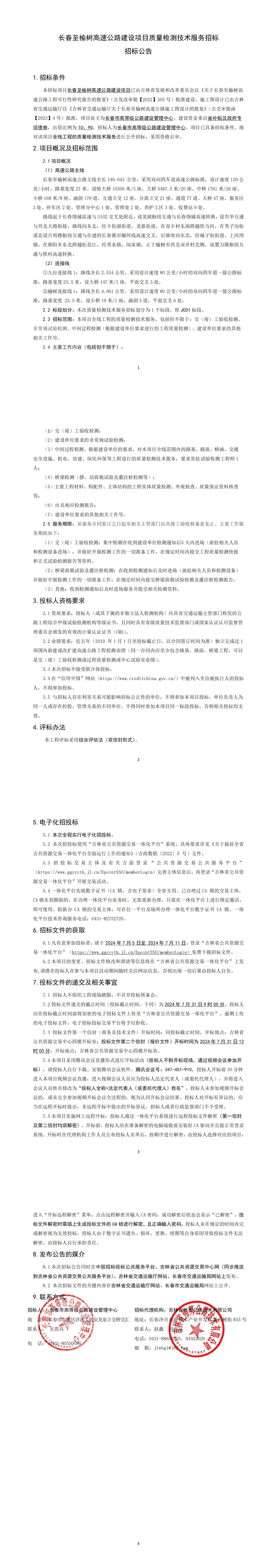 长春至榆树高速公路建设项目质量检测技术服务招标招标公告