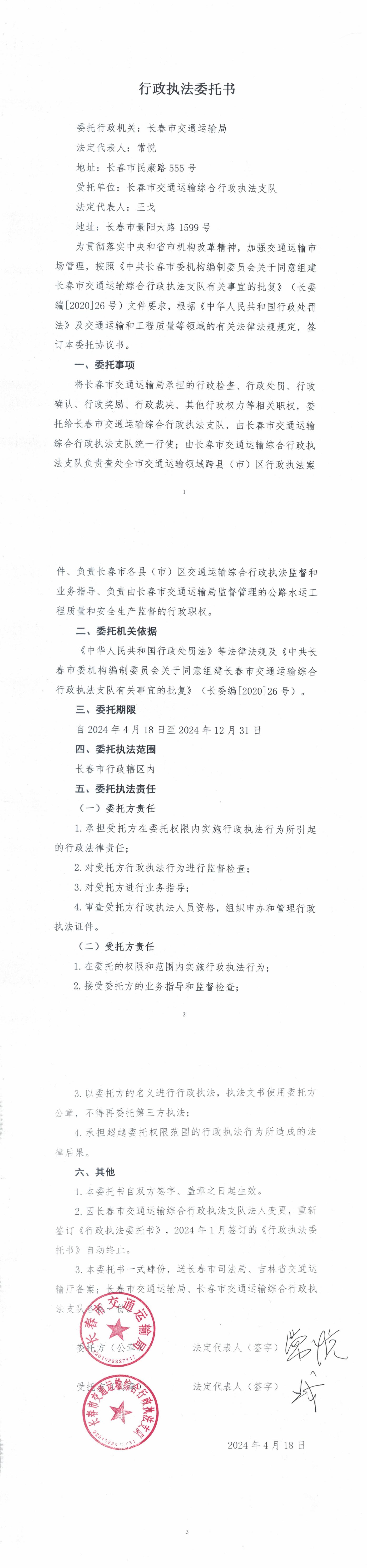 2024年行政执法委托书