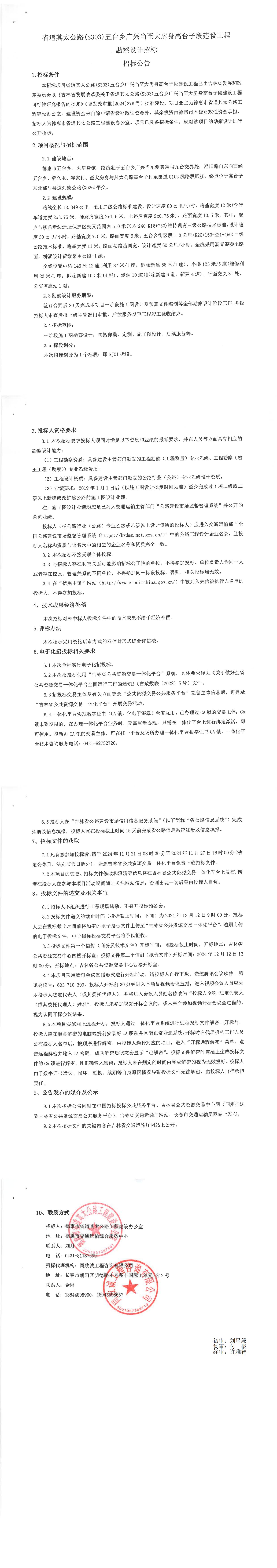 省道其太公路(S303)五台乡广兴当至大房身高台子段建设工程勘察设计招标 招标公告