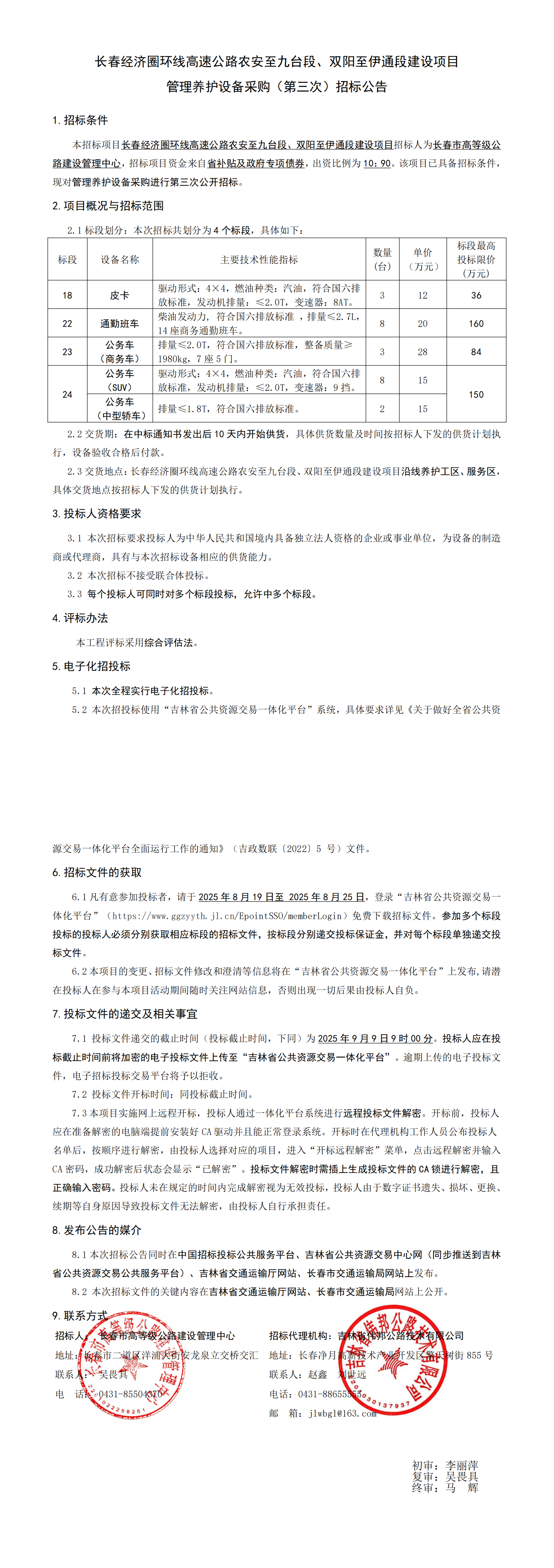 长春经济圈环线高速公路农安至九台段、双阳至伊通段建设项目管理养护设备采购(第三次)招标公告