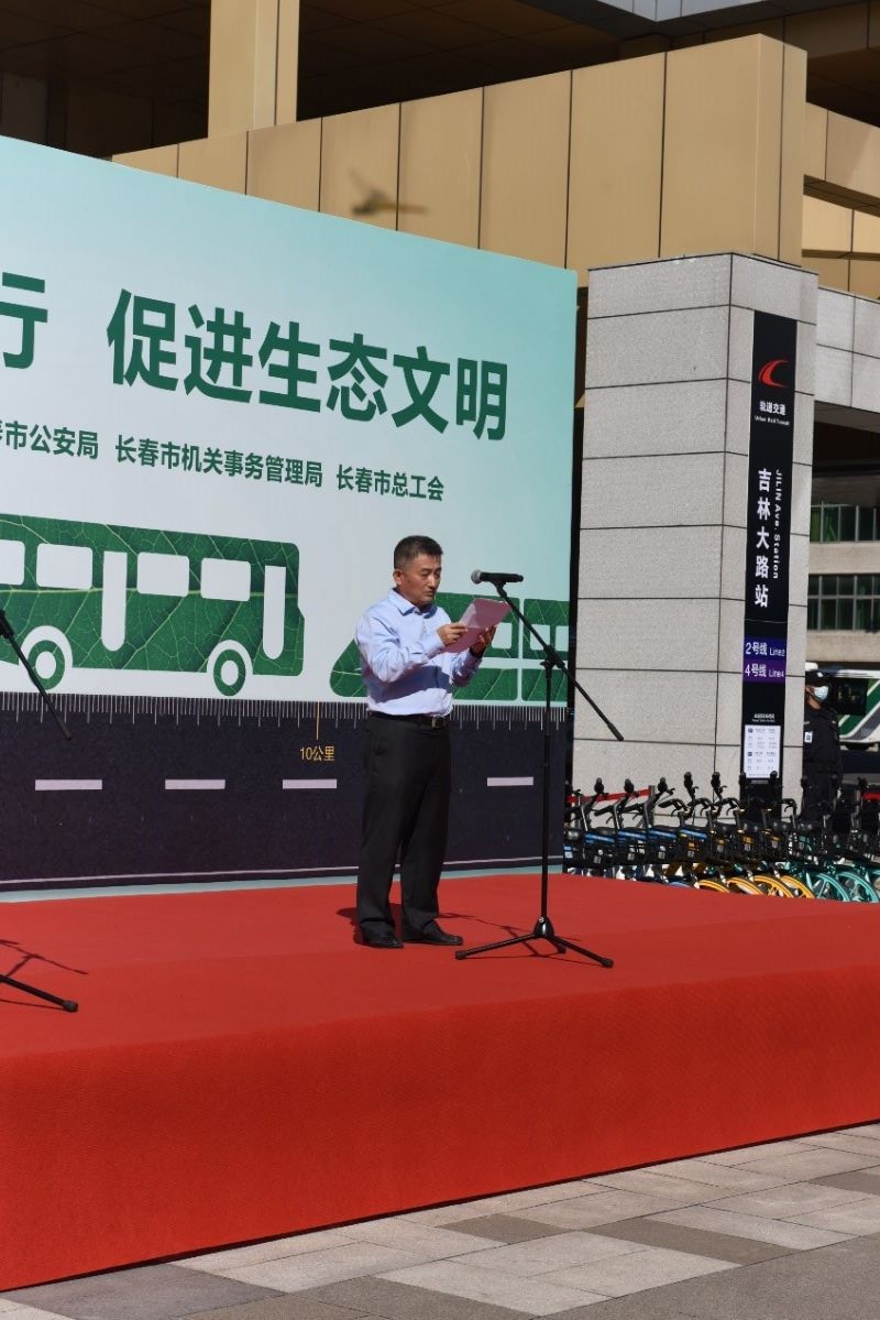 长春市交通运输综合行政执法支队李一鸣支队长从行管部门角度介绍了绿色出行活动意义和公交出行宣传周活动具体内容。李一鸣支队长指出,经过长期的努力,我市公共交通事业取得了长足发展,并已于2021年7月,正式被 十大足彩平台命名为国家公交都市建设示范城市。在公共交通建设方面,我市不断加大投入力度,我市公交营运车辆中,绿色公交车辆占比达到100%,新能源公交车辆占比已达67.3%;轨道交通建设在同类城市中处于领先地位,轨道交通通车里程已达到100.1公里,“环形+十字”的城市轨道交通骨干网络已经形成;常规公交与轨道交通衔接率得到大幅提高,分发挥公共汽电车对轨道交通客流的饲喂和分流作用,改善了市民公交出行条件;引进了共享自行车,为市民出行增加了新的方式。在促进城市绿色出行方面,持续加大政策倾斜力度,通过部分街路交通组织调整、错峰上下班、无车日宣传活动等政策手段,进行交通需求控制,实现交通供需平衡调节;通过制定慢行交通规划,同时辅以城市精品道路提升改造建设、人行过街天桥建设、政府投入公共自行车等方式鼓励市民绿色出行;加强静态交通建设,出台《长春市机动车停车场管理条例》,制定《长春市公共停车场和道路停车泊位停车收费管理办法(试行)》,合理引导小汽车使用。