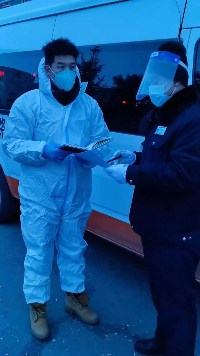 3月16日开始,天降大雪,气温骤降,赵梓钧同志出发时衣着单薄,因为任务紧急,没来得及回家取件厚点的衣裤,他只能在寒风中冻得瑟瑟发抖。冷得实在受不了就钻到车里暖和一会儿,待身体有了一点热气再顶风冒雪继续指挥调度。连续在高强度的工作任务和恶劣的工作环境双重压力下,他已经双眼通红、嗓子沙哑的说不出话来。寒风阻挡不了他抗疫的脚步,骤雪动摇不了他勇毅的决心。他说:“新冠病毒肆虐,这时候正需要我们党员干部挺身而出,打赢疫情阻击战义不容辞,不管多苦多累,我都会坚守在岗位上,胜利终将属于我们”。领导考虑到他工作强度太大,几次通知他回长春休整,安排人员替换,他说:换人来九台感染风险太大了,别换了,我还能坚持!