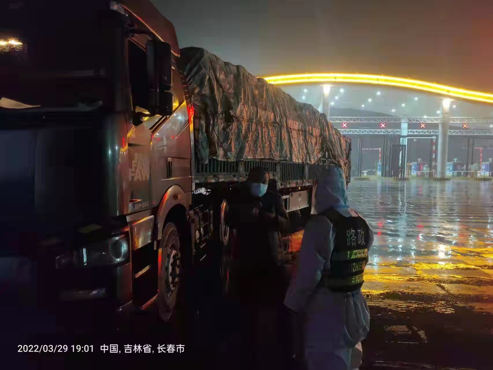 “我们的任务艰巨,但没有一个队员退缩。”李道明介绍,执法九大队负责的四家子卡点距离市区40多公里,莲花山高速口卡点距离市区30多公里,与吉林市、九台交界。长春东高速口卡点车流量大,是吉林、九台、飞机场进入市区的主要入口,警备路、合心卡点大多都是为汽车厂、客车厂配套运输车辆通行,每一处都尤为重要。“我们要对所有过往车辆进行登记,并做好查验通行证、核酸检测报告、个人疫情防控承诺书这些工作,丝毫不能大意。”李道明说,大队内许多职工或家在外地、或所在小区处于封控管理状态,不能参与防控工作,能上岗的执勤人员仅有18人,平均每个卡点每天执勤人员不足4人。“特殊时期、特殊管理,现在所有上岗的执勤人员全部驻站,各卡点实行滚动排班制。大家除了每天能换班睡会觉之外,没有任何休整时间,基本上都是睡醒就上岗。”李道明和队员们就是这样以站为家,相互扶持,完成了每一天卡点戒严管控任务。