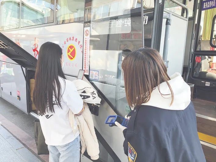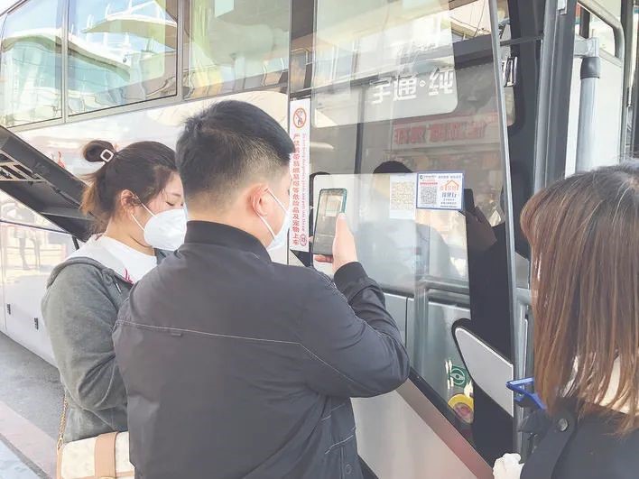 “你好,请主动扫码,提前出示核酸证明。”9时许,在长春站北站长春至榆树城市公交T388路公交车始发站,工作人员提醒着等车的乘客。公交站亭前排起长队,乘客佩戴着口罩,井然有序,彼此之间保持着安全距离。现场8位工作人员各司其职,认真检查着乘客的吉祥码、48小时核酸报告和当地接收证明。手续齐全后,司机主动帮助乘客摆放行李。车门口乘务员按照防疫要求,再次让乘客扫描客车二维码进行信息登记,保证乘客信息可追溯,并且测温乘车。“客运人员工作很认真,也很辛苦。虽然检查环节很多,但我感觉挺好的,这样出门更安全。”乘客周先生说。