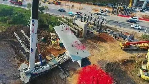 同样令人欣喜的是,长春都市圈环线高速公路二期项目长双烟公铁分离式立交桥首榀钢箱梁架设成功。350吨钢箱梁安装吊车及运梁车驻位,记者看到地面和上方桥台现场调度人员、吊车司机配合默契。