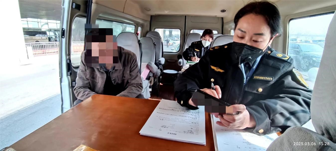 3月8日上午,长春市交通运输综合行政执法支队女子中队执法人员在“三八节”期间依然坚守岗位,在长春西站例行执法检查。