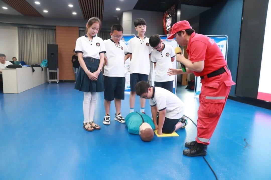 针对暑假临近,天气炎热,很多学生都喜欢水上运动的特点,现场工作人员向学生讲解了溺水自救抢救知识,通过道具演示正确穿着、心肺复苏的方法,指导孩子们正确穿戴救生衣,不断提高防溺水与自救自护能力。