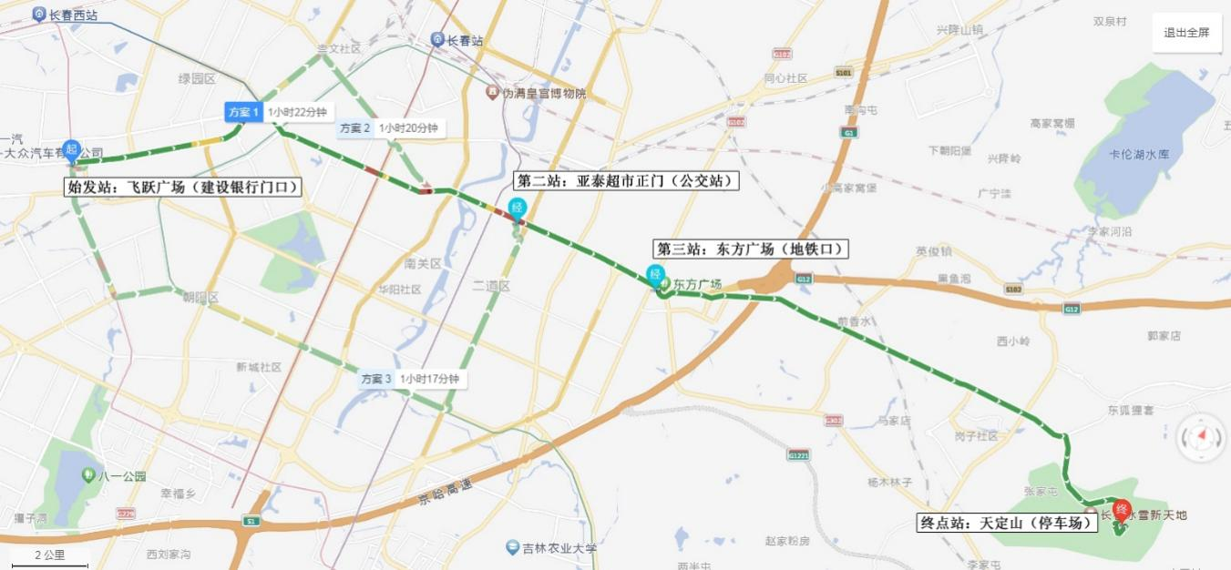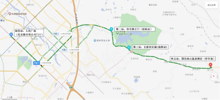 人民大街-卫星路-生态大街-福祉大路-净月大街-长清公路-双阳北山路圆通寺-神鹿峰 |