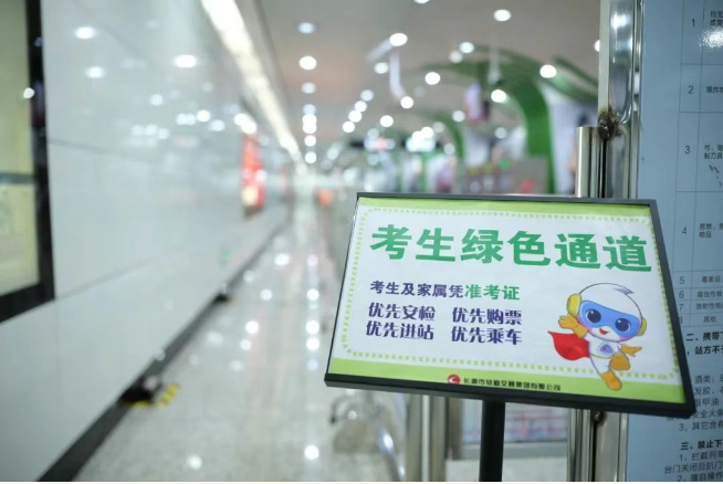 6月7日至9日,长春市轨道交通集团开启“爱心护航”模式,所有车站安检口均设置“考生绿色通道”,考生凭准考证可携陪同家属享受优先安检、优先通行、优先问询、优先处理。特别在临近工农广场(省实验考点)与和平大街(十一高考点)出站口设置陪考家长临时休息区,让家长候考更安心。