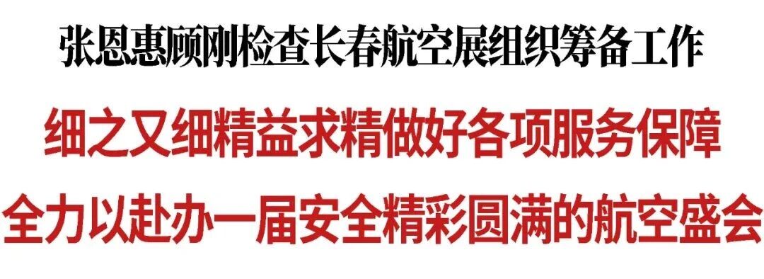 备受关注的2025空军航空开放活动和长春航空展开幕在即。9月18日,市委书记张恩惠、市长顾刚来到长春国际航空博览城,检查活动组织筹备工作,强调要落实省委省政府工作要求,细之又细、精益求精做好各项服务保障,全力以赴办一届安全、精彩、圆满的航空盛会。